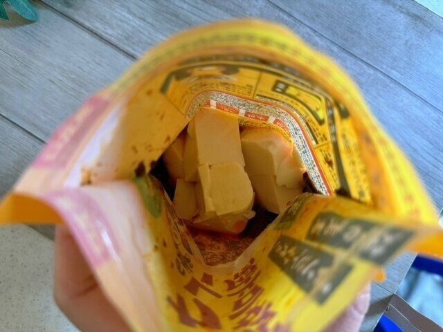 作り方はびっくりするほど簡単。袋を開け、その中に豆腐を入れます。