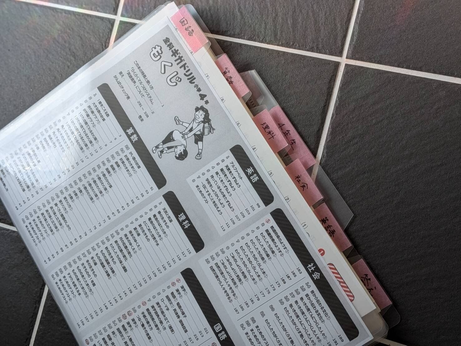 フォルダーをバッグに入れた状態で使うと、バッグ部分も収納として使えるため、収納力がさらにUP!また、毎年増えていく教材を姉妹分保管していくため、ファイル自体が場所を取らない薄さなのも地味に助かっていますよ。