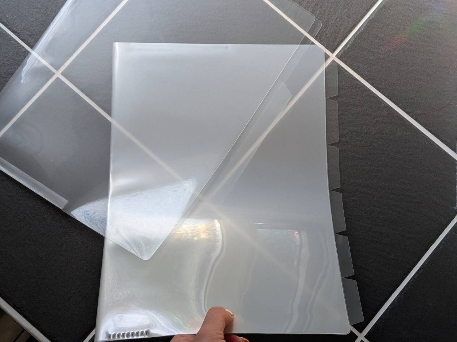 一見するとインデックスつきのクリアファイルにも見えるアイテムですが、じつは一体型ではなく、商品名どおりバッグの中にフォルダーが入ったセット商品になっています。