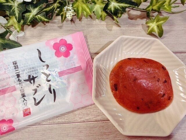 名前の通りしっとり柔らかめのサブレで、クッキーよりも口当たりがやさしい感じです。桜葉を練り込んだ生地のほんのり塩気と甘さのバランスが良く、桜の香りもほどよく感じられました。新食感のサブレでした。
