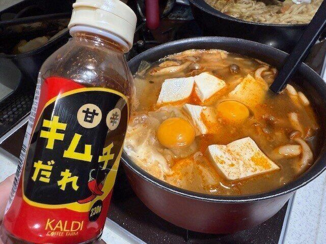 最後はチゲスープに。これはもう間違いなしの味。とろみのあるだれは、しっかりした旨みとキムチらしい酸味も感じられて、辛すぎないので、辛さ控えめ。これ1本で味が決まるのでとても便利な万能調味料だれでした。
