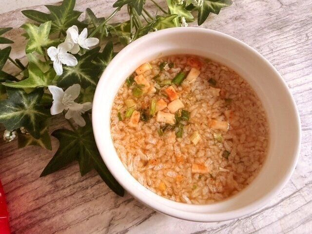 キムチチゲのスープにご飯を入れて煮込んだピリ辛でコクのあるキムチチゲクッパ
