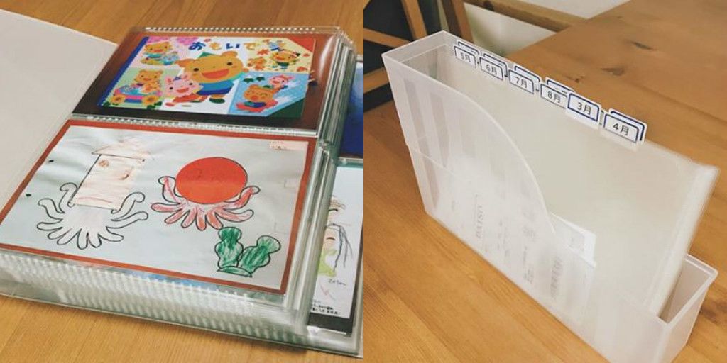 こちらは子どもの作品などの思い出収納。作ったものや手紙など、なかなか処分もできず、かさばるので収納に困りますよね。思い切って手放すことを決心した清水さんは、作品を写真に残し、アルバム収納に。見たい時にすぐ見れて、すっきり収納できてよかったようです。