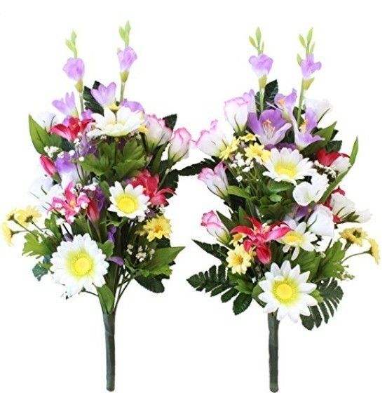 一般的にお墓の左右に花立があります。つまり、花立は2つ。そのため、仏花は1対になっていて、2束で1つのセットになります。でも、1束だけ買うのでもOKです。1束に入っている花の本数をそれぞれ奇数(3本、5本、7本)になるように2つに分けて、2つの花立に分けて飾りましょう。