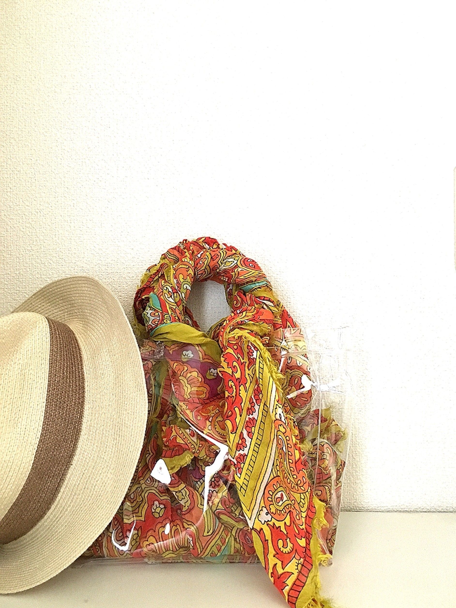 手持ちのスカーフを入れて中身を隠します。スカーフ柄を夏らしいものにすると良いですよ。
