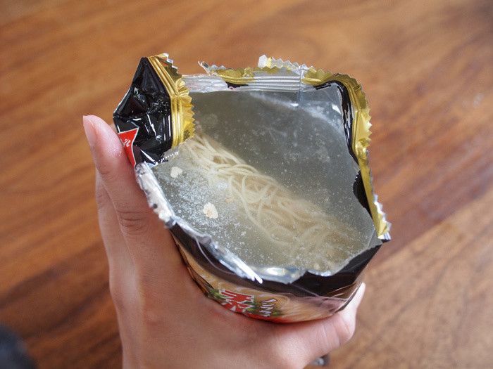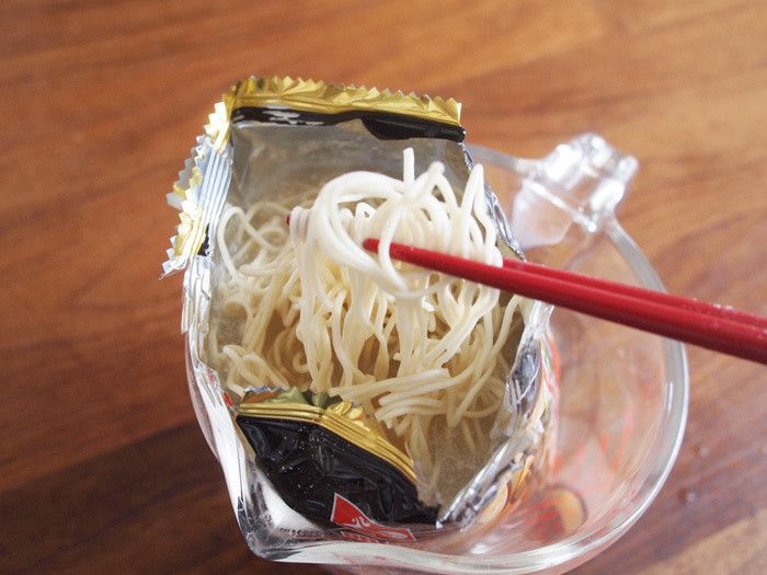 さて、一番腰が重かった袋麺です。こちらは水だけで本当に調理できるのでしょうか…?お皿もない、という想定で進めたいと思います。