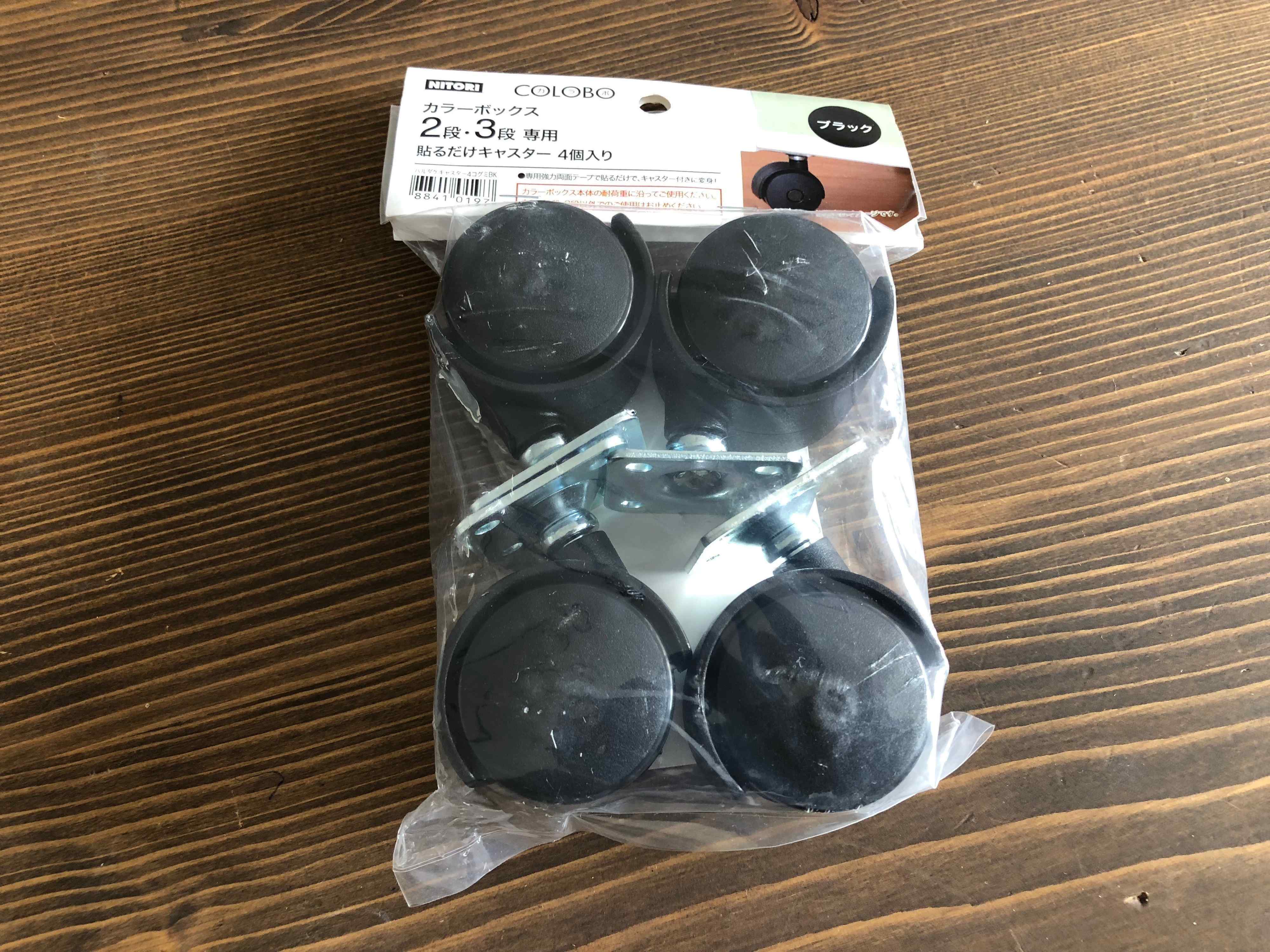 再び登場、ニトリ「カラーボックス2段3段用 貼るだけキャスター」。