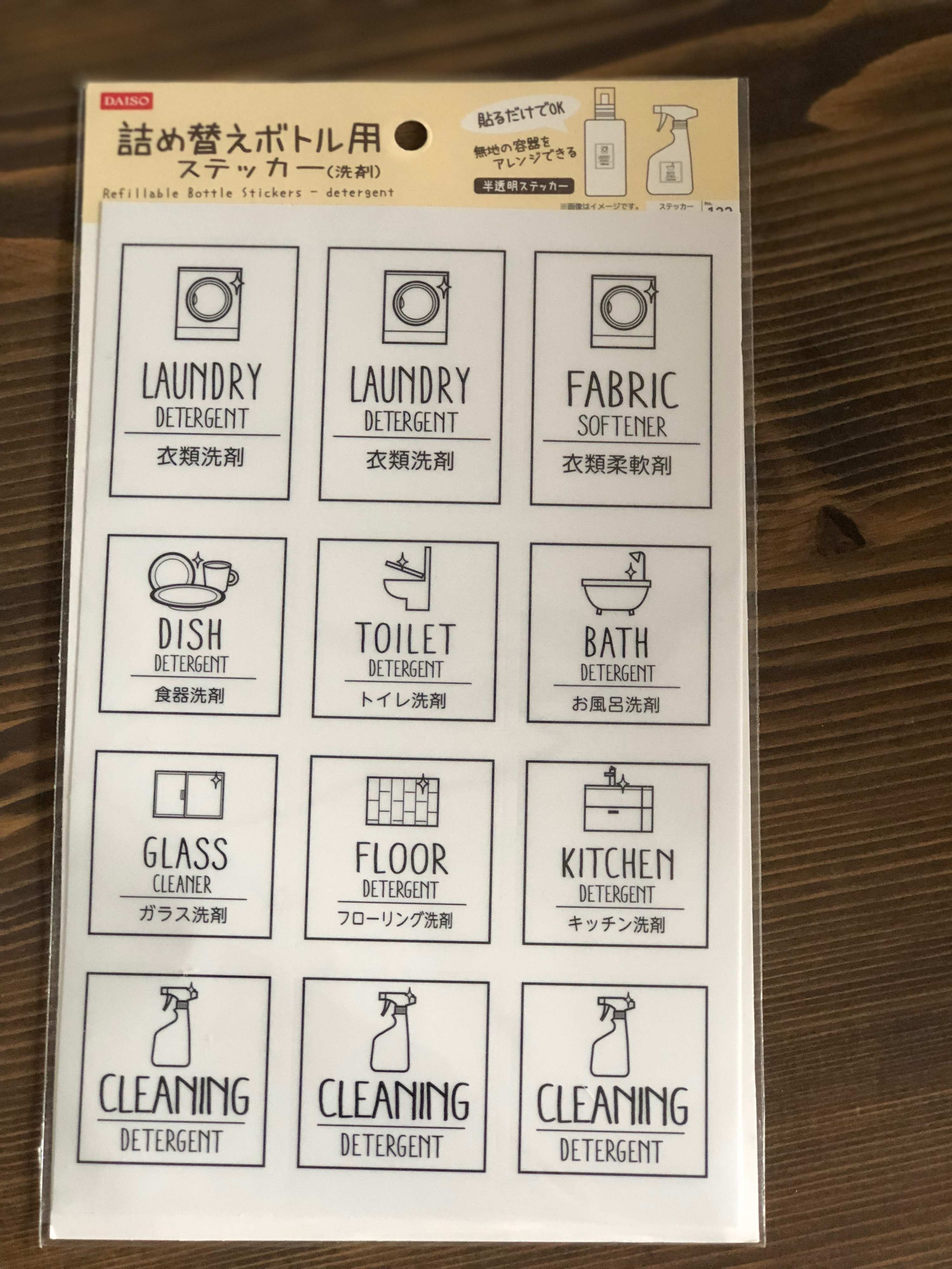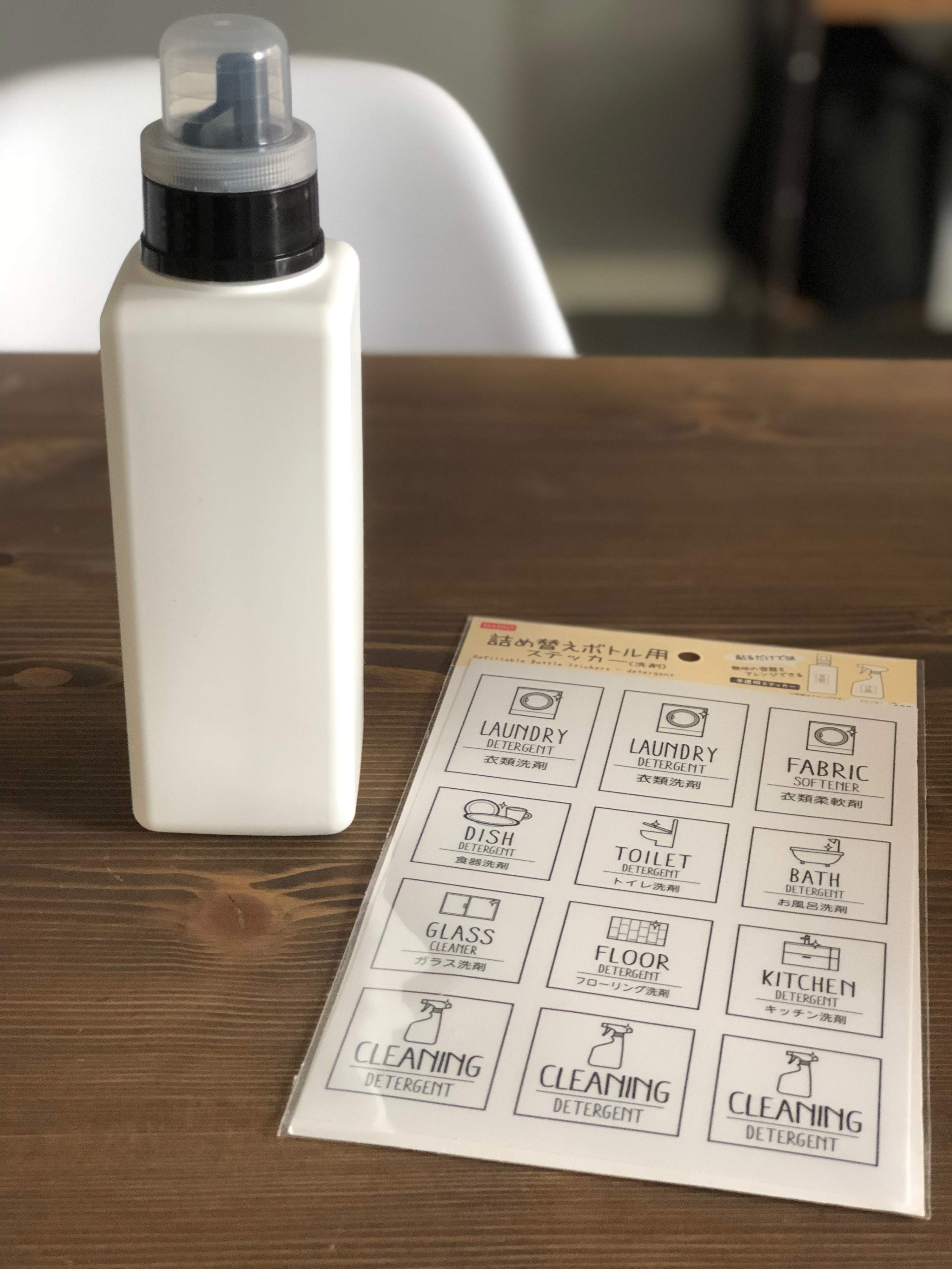 もちろんラベルもダイソーで。詰め替え用ステッカーがオススメ。