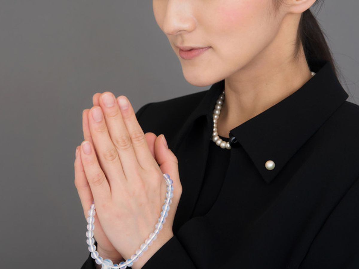 1.焼香台の少し手前で遺族と僧侶に一礼。焼香台の前に進み遺影を仰いで一礼、合掌した後にご焼香をします。数珠を左手にかけ、右手の親指、人差し指、中指の3本で抹香をつまみます。