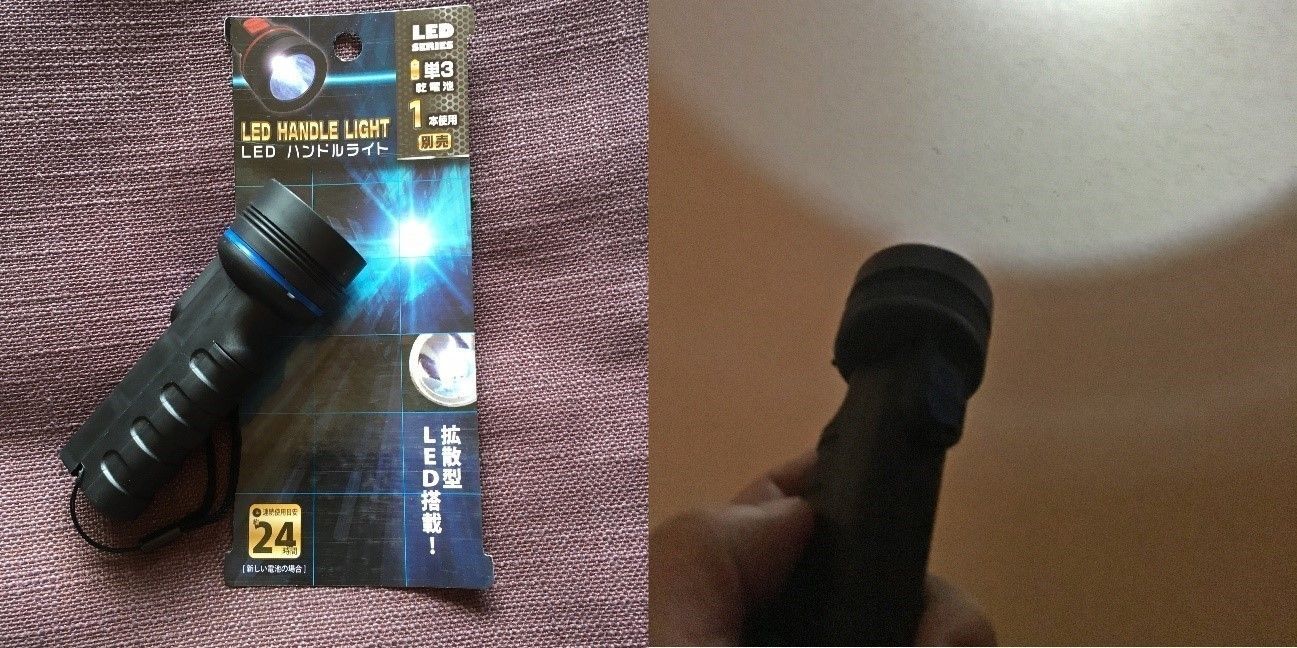 わたしのおすすめは、単3電池1本で使えるダイソーの『LEDハンドルライト』です。単3電池1本用LEDライトだと明るさに不安だと思うかもしれませんが、明るさは十分ですし、電池持ちものすごく良いいです。緊急用としてならまったく問題ありません。