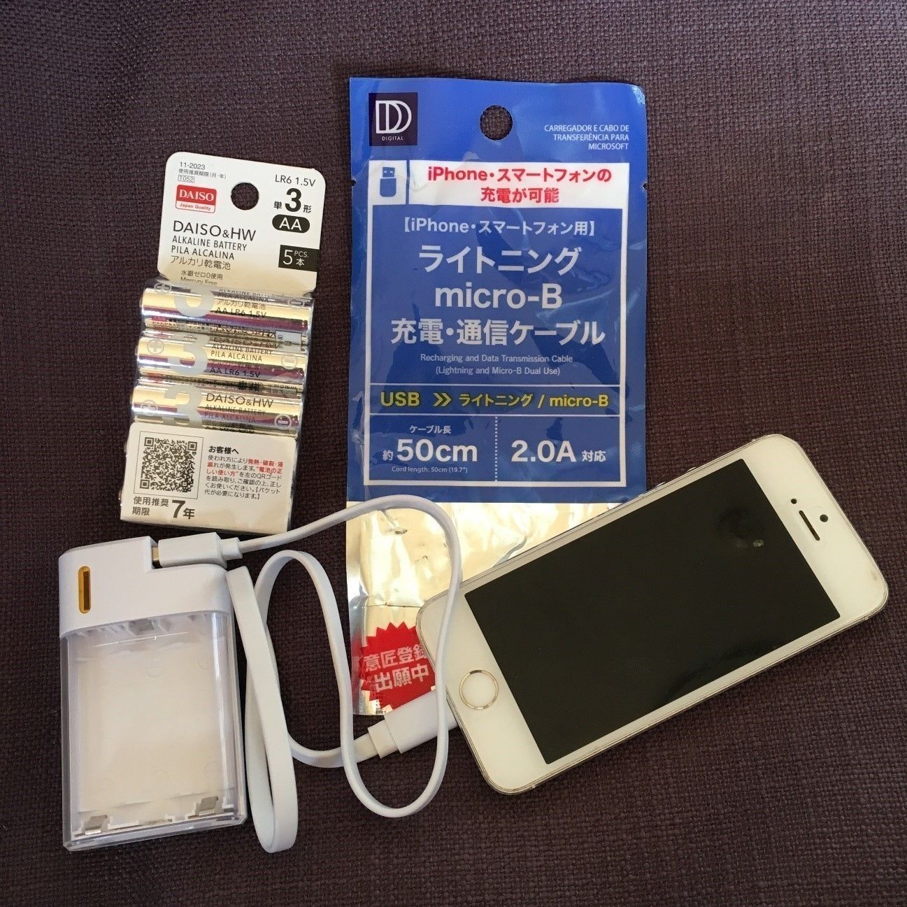 また、乾電池式の充電器と乾電池をセットで防災バッグに入れておくのもおすすめ。停電になっても、乾電池で充電できればスマホが使えるようになりますからね。