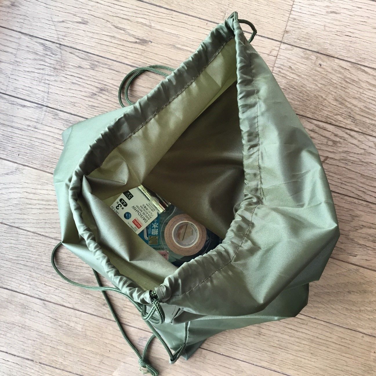 ダイソーには「シンプルナップザック」という商品が売っています。薄手の生地に紐がついているだけなのですが、軽くて容量もたっぷり入ります。