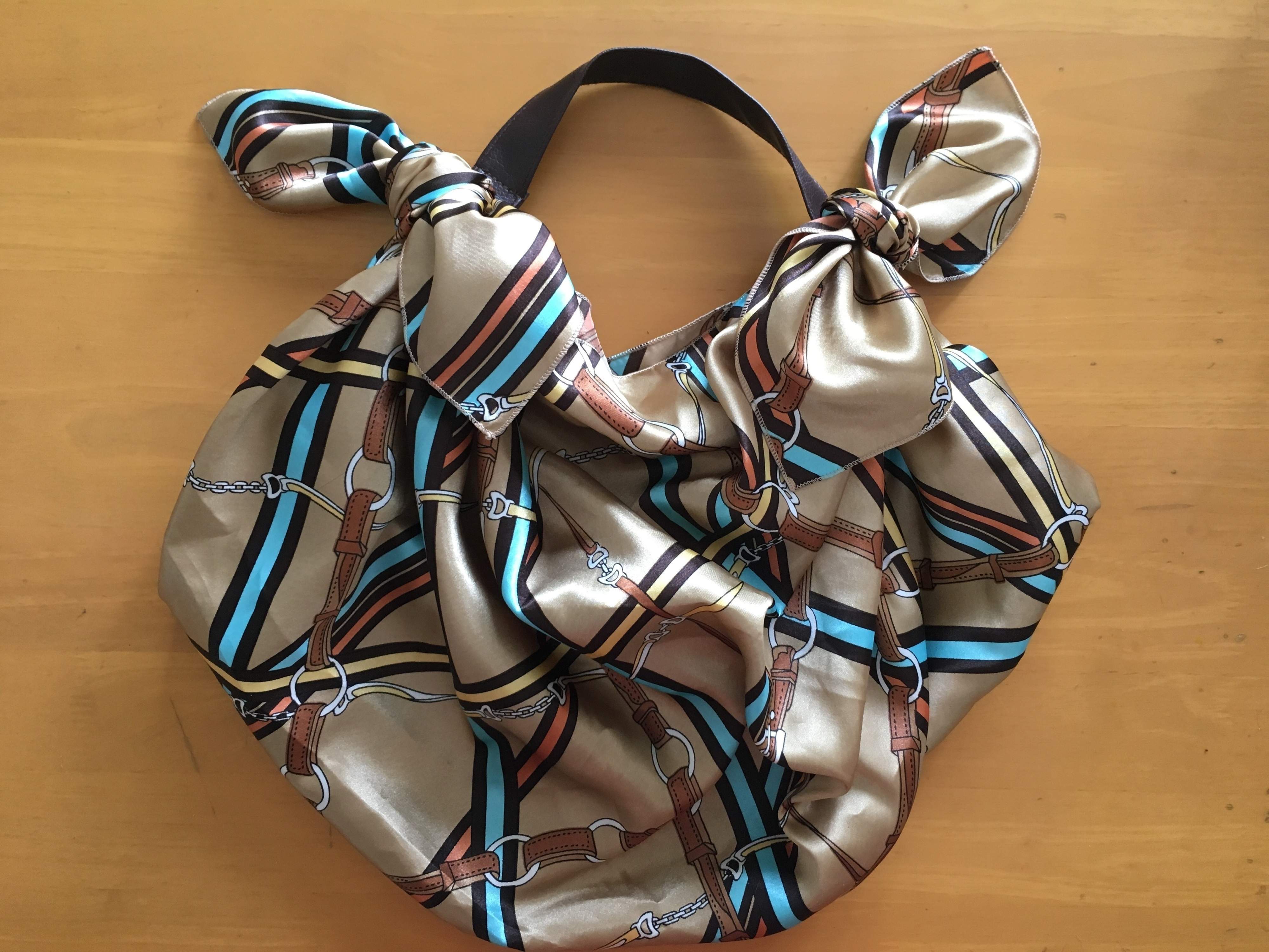 とてもきれいなスカーフの柄、首回りに巻く意外にアレンジできないかしら…。なんと、お気に入りのスカーフとキャンドゥのバッグハンドルでバッグができるのだそう!(社)日本スカーフコーディネーター協会認定講師の勝連さおりさんが教えてくれました。世界で1つだけのバッグ作りにトライ!