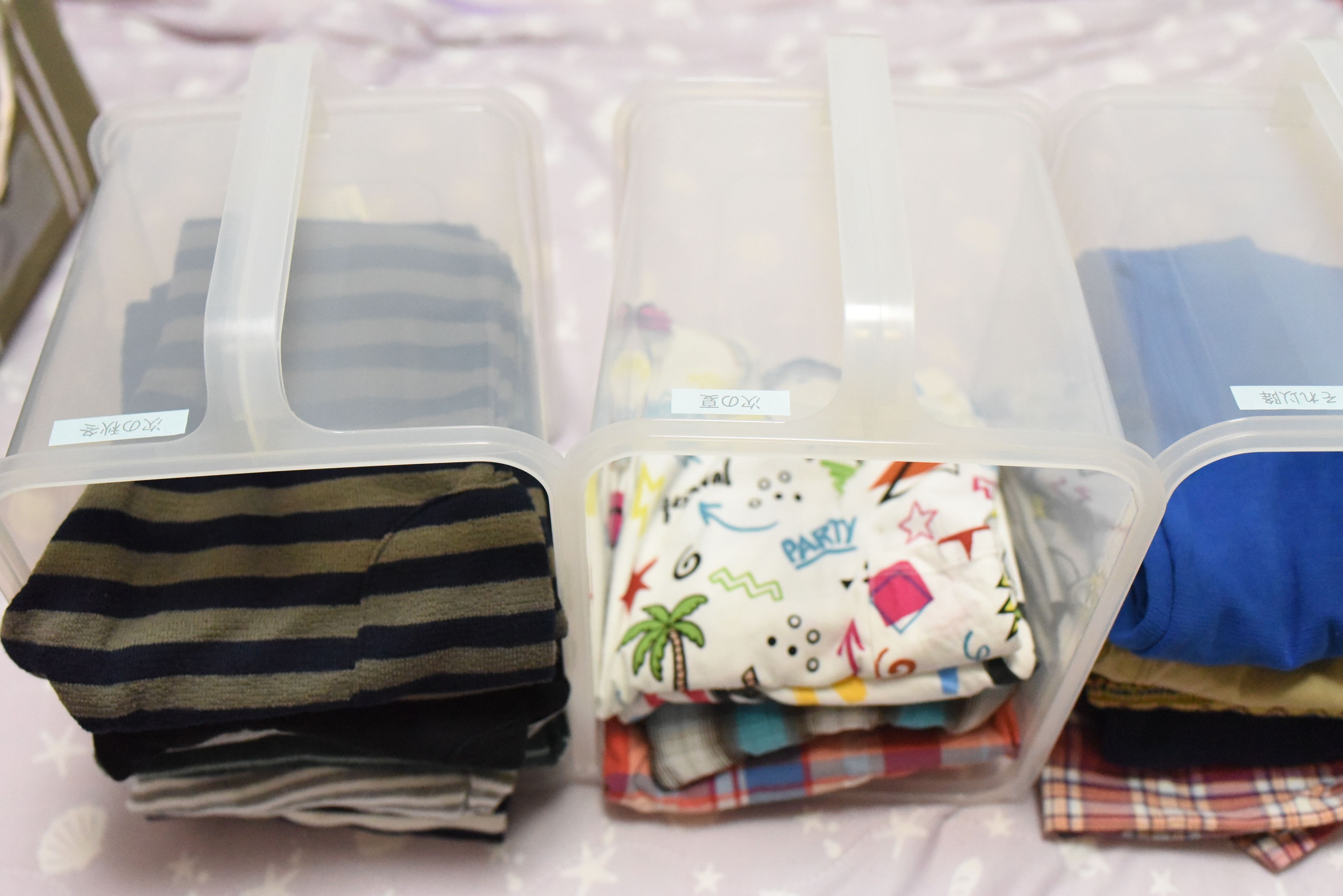 「次の秋冬」「次の夏」「それ以降」と分類して保存しておくことによって、どのサイズがどのくらいあるかが把握できるので、セールの時に来年用の買い物が効率的にできるようになりました。
