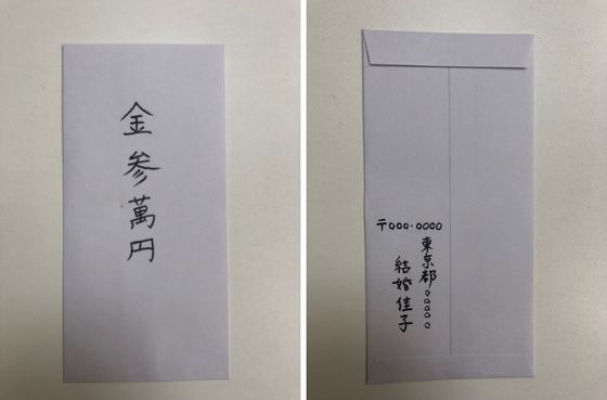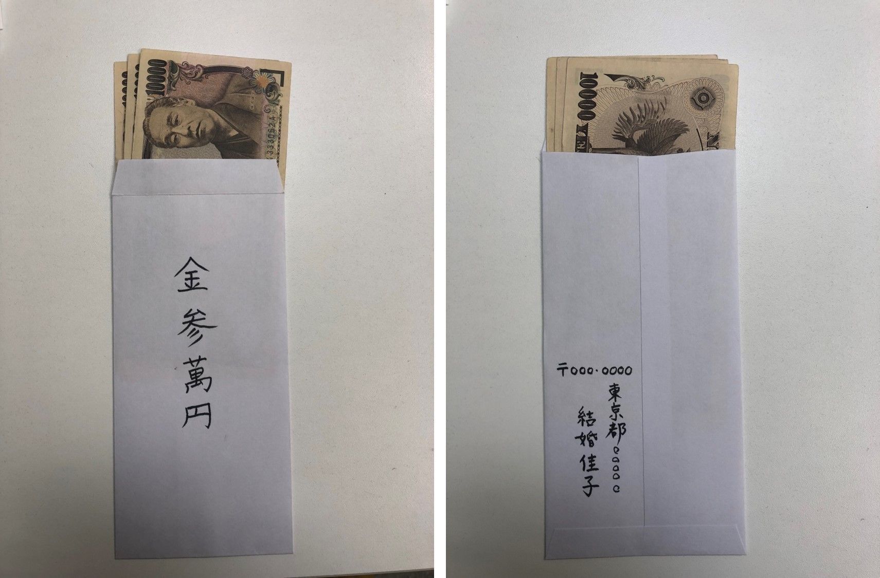 それぞれ別に2万円包みます。このときも、夫婦同じデザインのご祝儀袋を使いましょう。
