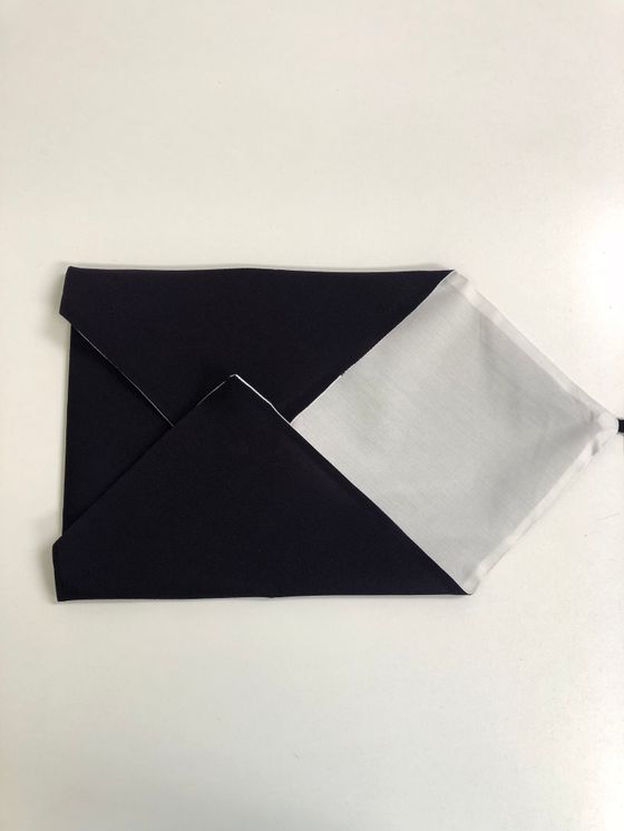 1. ご祝儀袋を、ふくさ中央よりやや左へ寄せる。