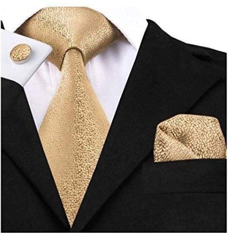 落ち着いていて、華やかさもあるシャンパンゴールドのネクタイは、ブラックスーツとも相性バッチリ。