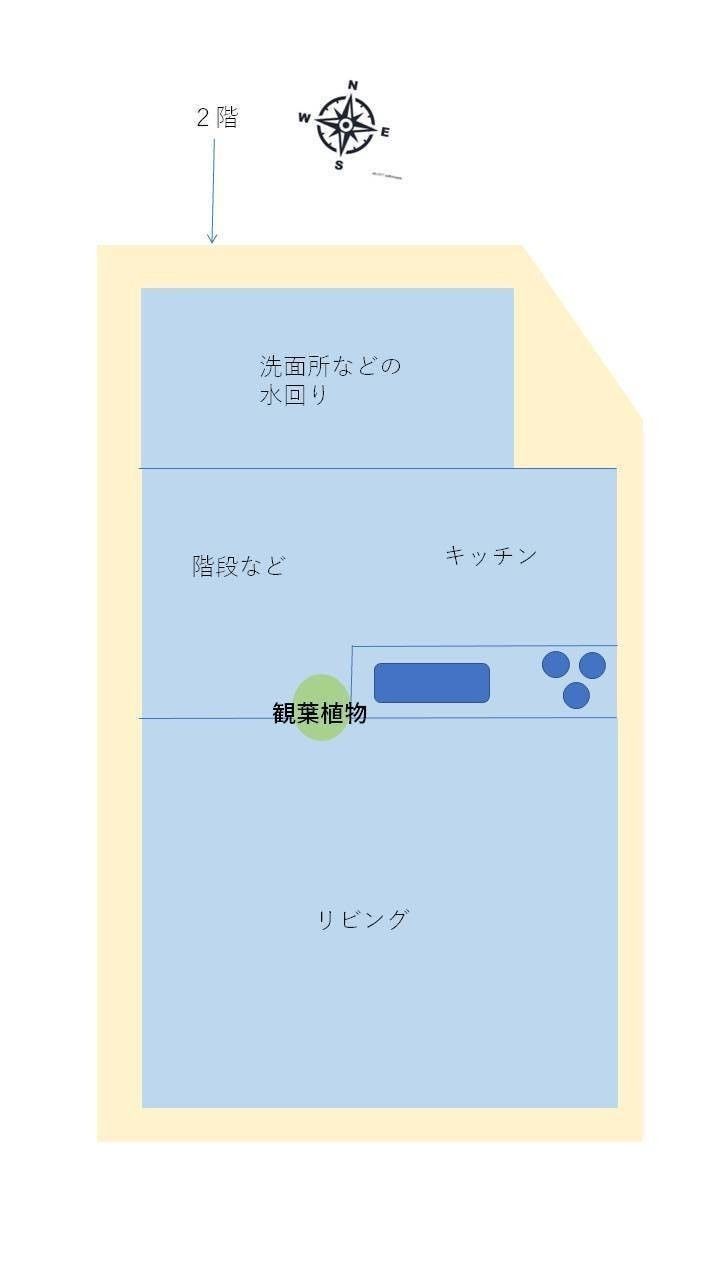 さらに、間取り図をよく見るとわかるけど、2階のシンクの3分の1くらいが、1階の玄関にかかっている。玄関は東から東北に位置して、「東の玄関は頑張り屋が住む家」のはずが、シンク=水場のダメージが上から覆いかぶさっているせいで、「頑張らない玄関」になっちゃってるんだね。だから、根気がなくて仕事が続かないんだよ。