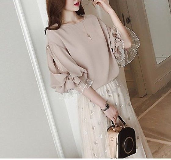 落ち着いたなかにも、素材やカラーでかわいらしさを少し取り入れてみましょう。レースの切り替えやそでふわのデザインなどアクセントのあるものを取り入れてみます。色は黒やネイビー、ベージュが定番。