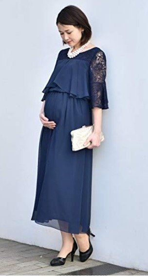 妊娠中の場合、幅、着丈にはゆとりのあるものを選びます。すそが広がったドレスは着丈が上がらず着やすいです。着ていて心地よいゆったり感がポイントです。