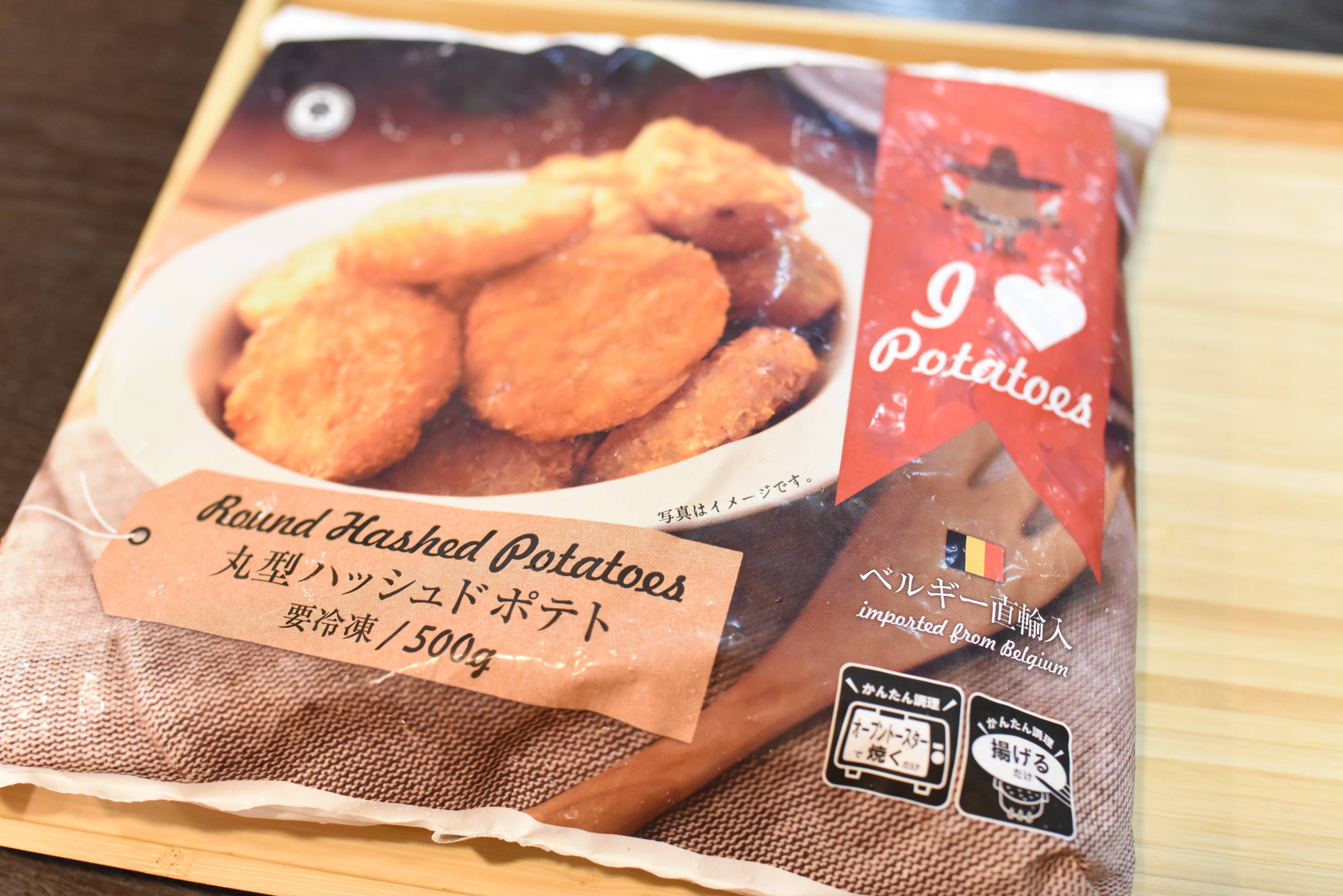 直径5㎝、厚さ1㎝のハッシュポテトが500g(約16個)入って、168円(税別)と格安のこの商品。