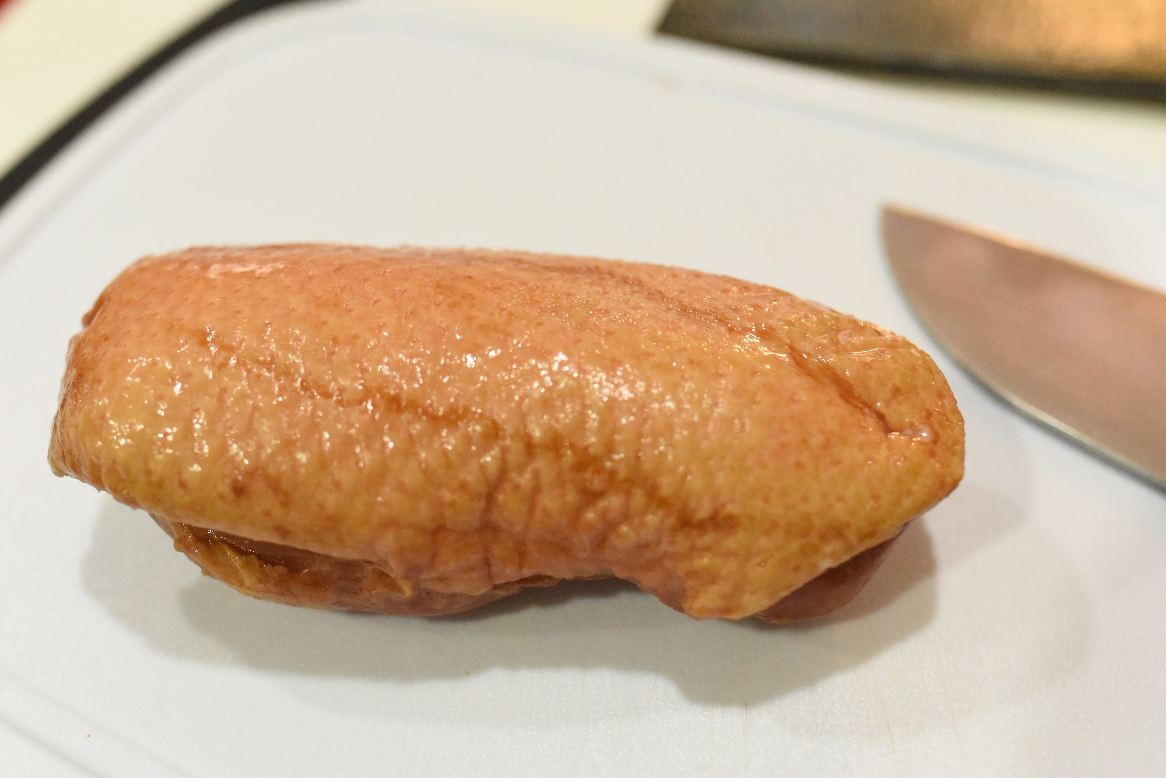 冷凍の状態で販売されているので、冷蔵庫で解凍しましょう。加熱調理されているので、スライスするだけで、食卓に出すことができます。