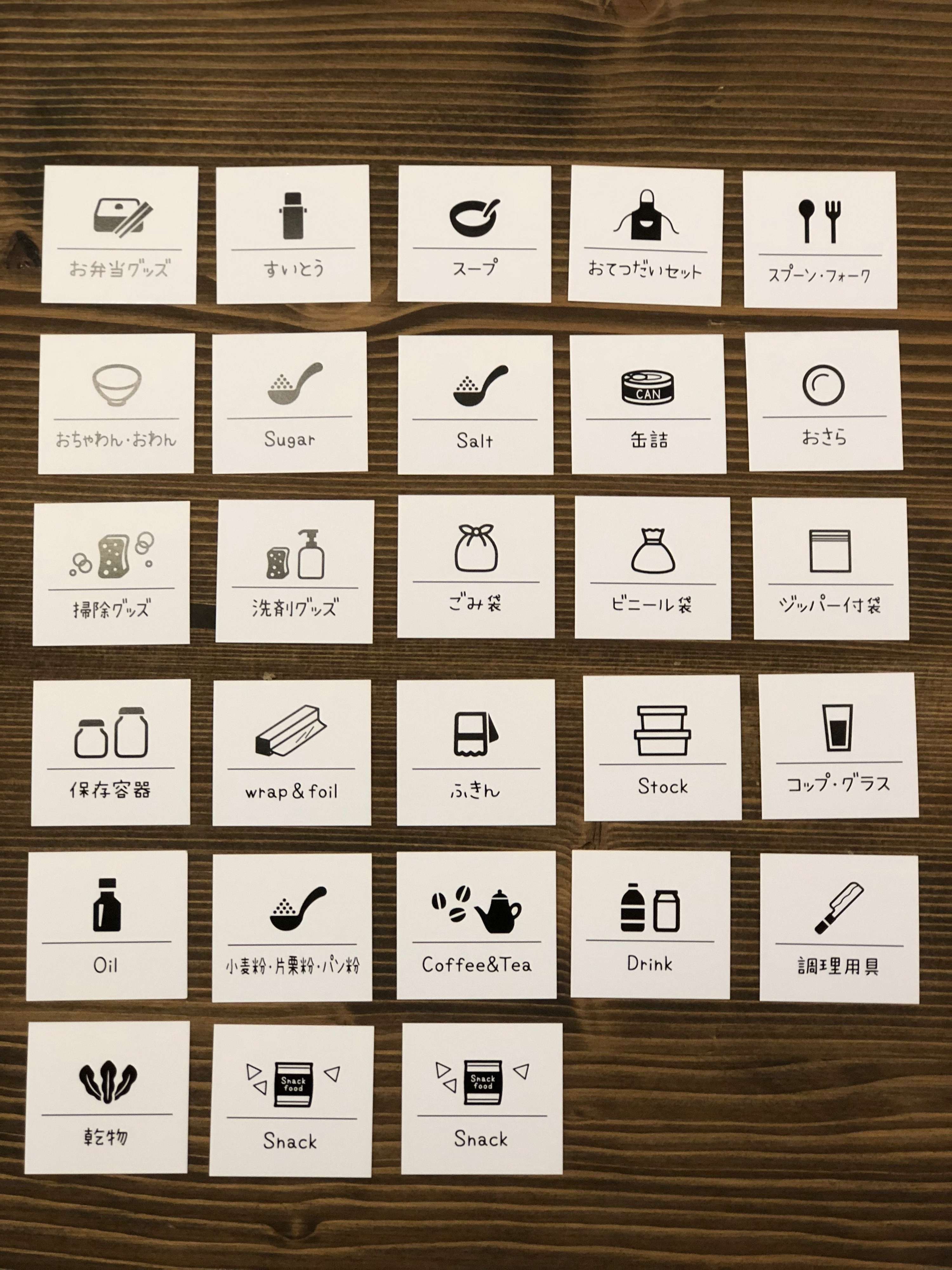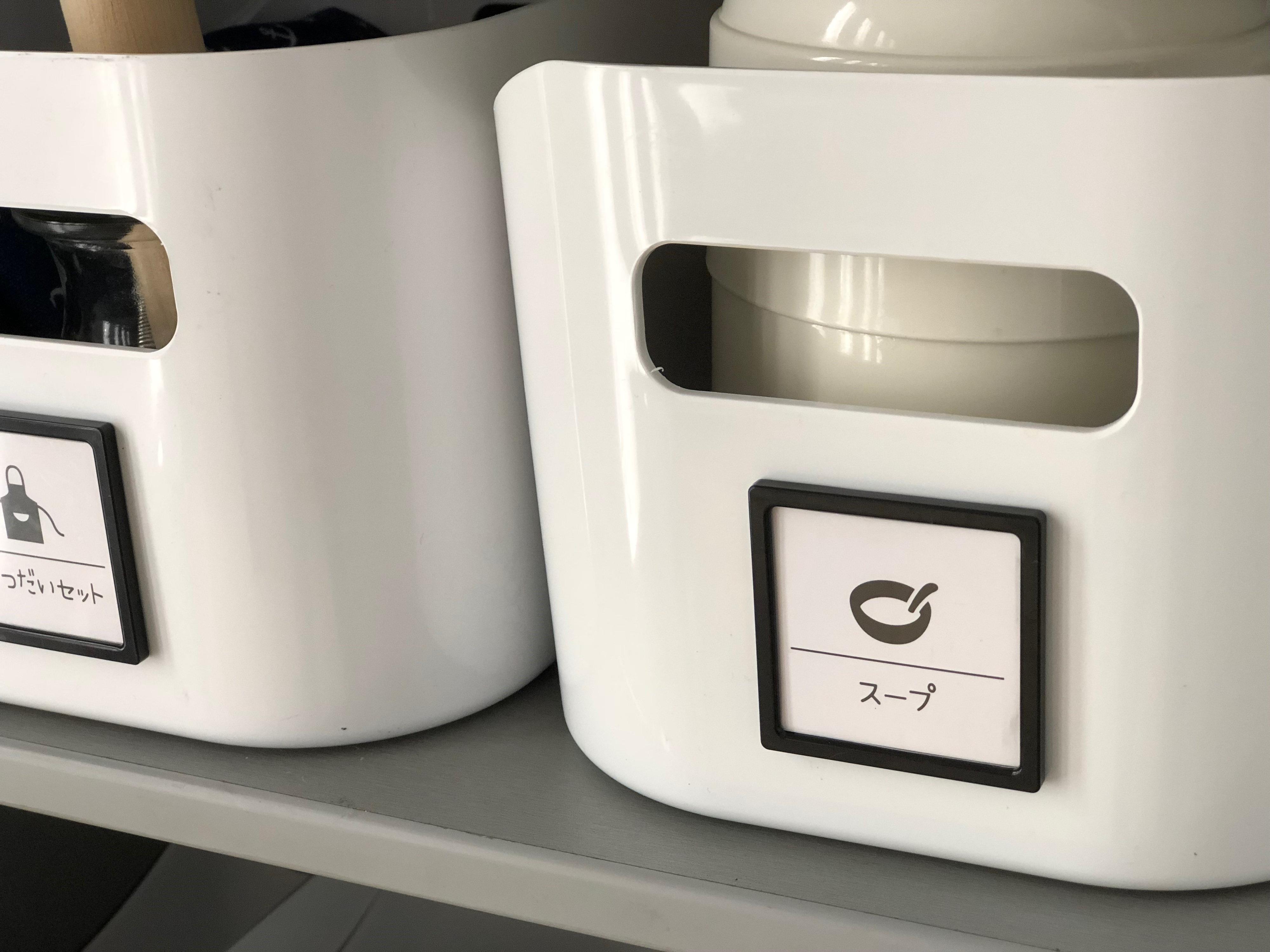 キッチンだけでもたくさん種類があります。どのバスケットに何が入っているかわかりやすくするためにも、ラベルがあるとわかりやすいですね。100均にあるラベルシールなども含めラベルグッズはおススメです!