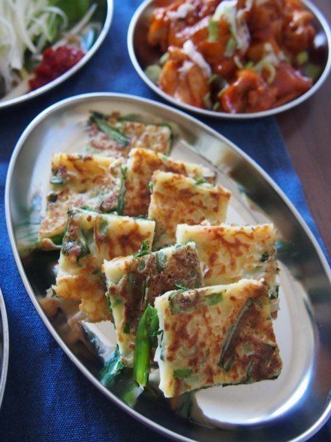 チヂミのように規則的なものを盛り付けると、綺麗にかつ丁寧に見えます。
