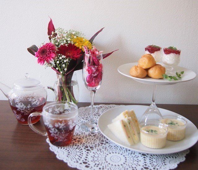 アフターヌーンティーに盛りつけてるものは普段もおうちで食べているものばかり。