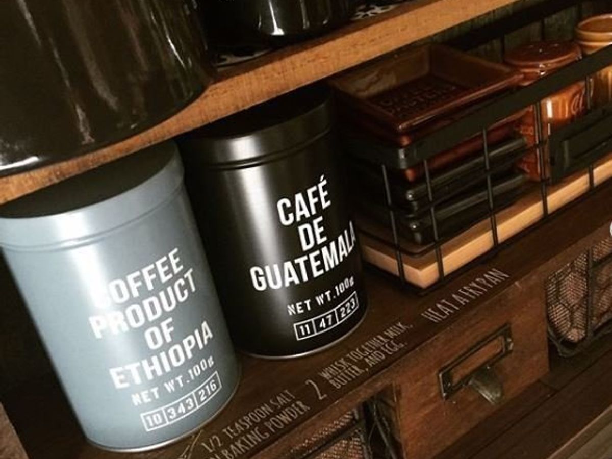 ロゴがかっこいいセリアのミニコーヒー缶。キッチンに飾っておくだけで、カフェ風のおしゃれ感を演出してくれそうです。コーヒーを入れるだけでなく、キッチン以外の場所でもいろいろ使えそうですね。