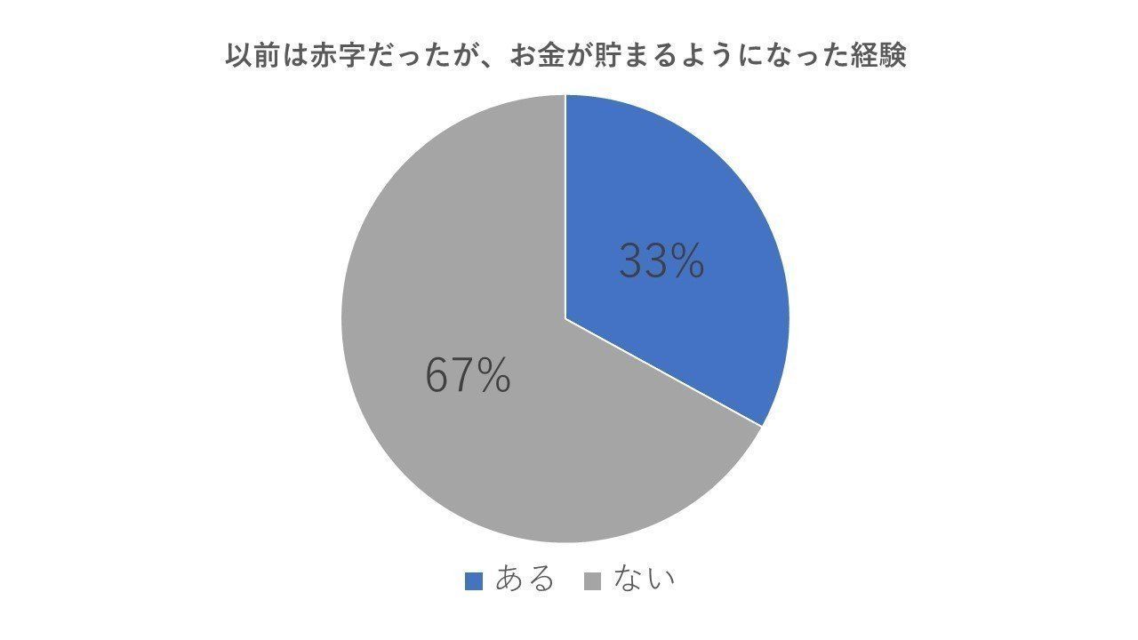 33.0%の人が、以前は赤字だったけどお金が貯まるようになった経験があると回答。