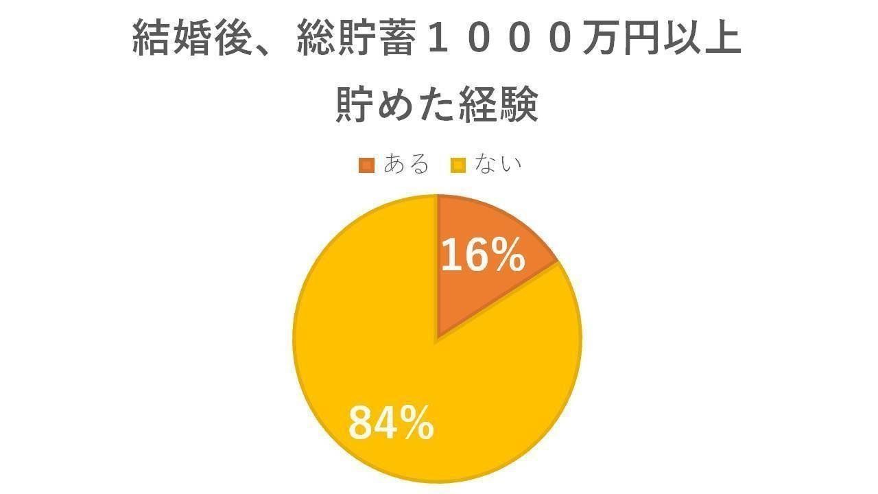 結婚後に1000万円以上貯めた経験のある人は、15.9%でした。