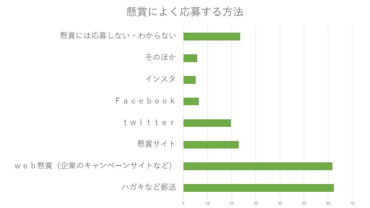 よく応募している応募方法は何か、複数答えてもらったところ、ハガキなどの郵送が62.4%、キャンペーンサイトなどのウェブ懸賞が61.8%という結果に。