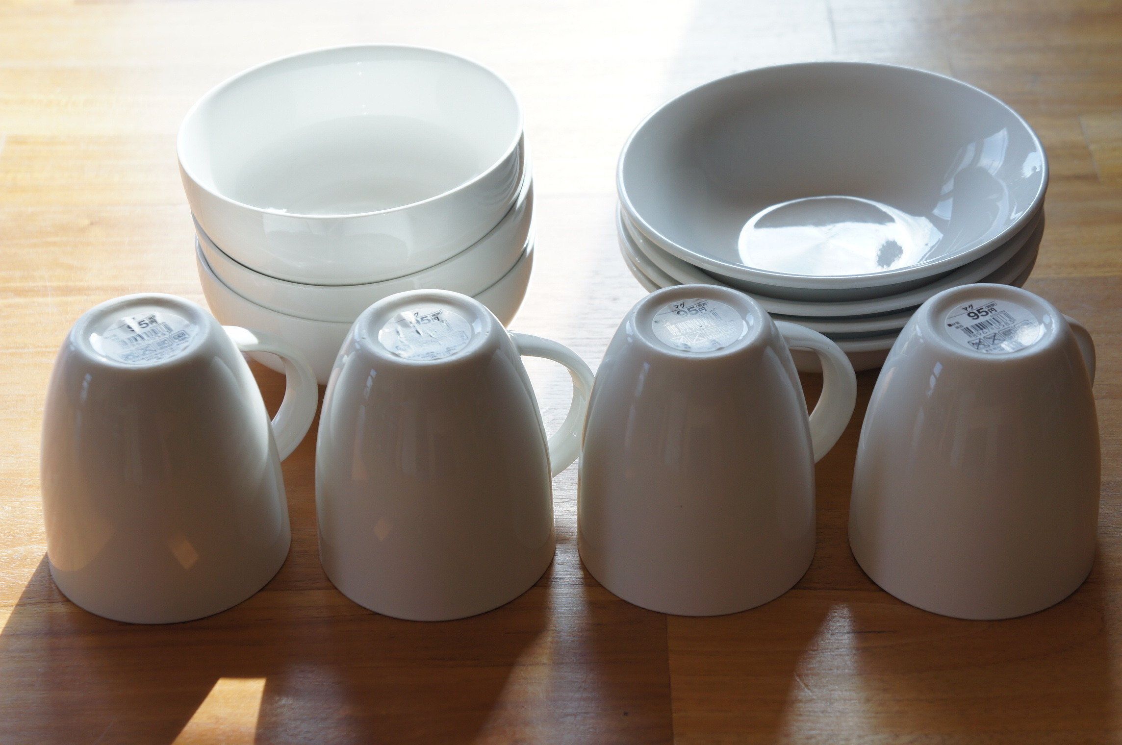 以前はいろいろなタイプの食器に興味があり、柄物アイテムなども所有していたユッカさんですが、結局よく使うのはシンプルな白い食器という結論に達したそう。そんなユッカさんが長年愛用しているのが、すっきりとしたデザインでお財布にもやさしいニトリの白食器です。お皿に加えて1つ95円のコップも買い足し、大切に使っています。