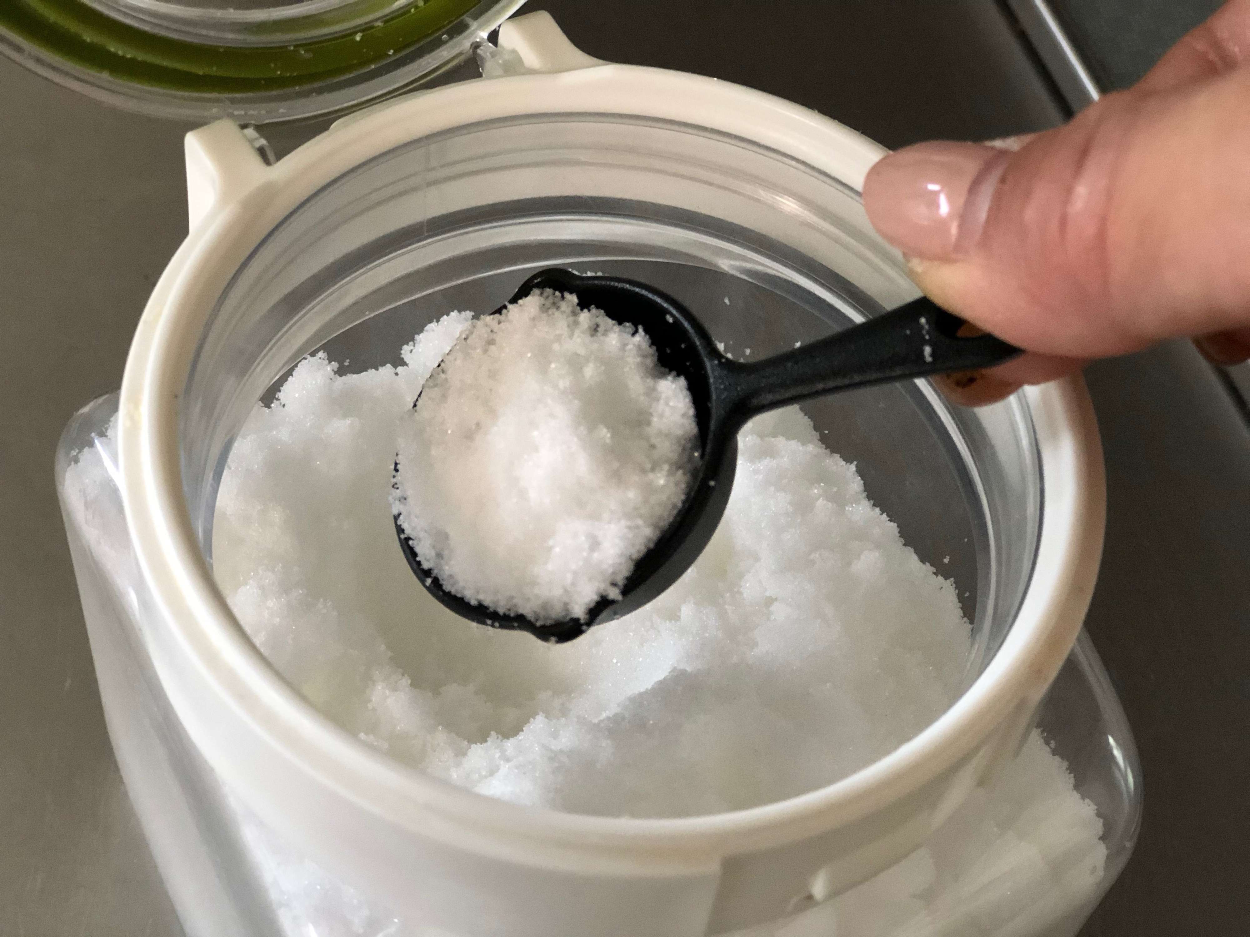 この計量スプーンは、持ち手が短いコンパクトな形状なので、塩や砂糖を入れておく容器に入れておけます。その時は、砂糖には大さじと大さじ1/2を、塩には小さじと小さじ1/2を入れておくのがおすすめでよ。レシピを見ながら料理を作る際にもきっと役立つと思います。