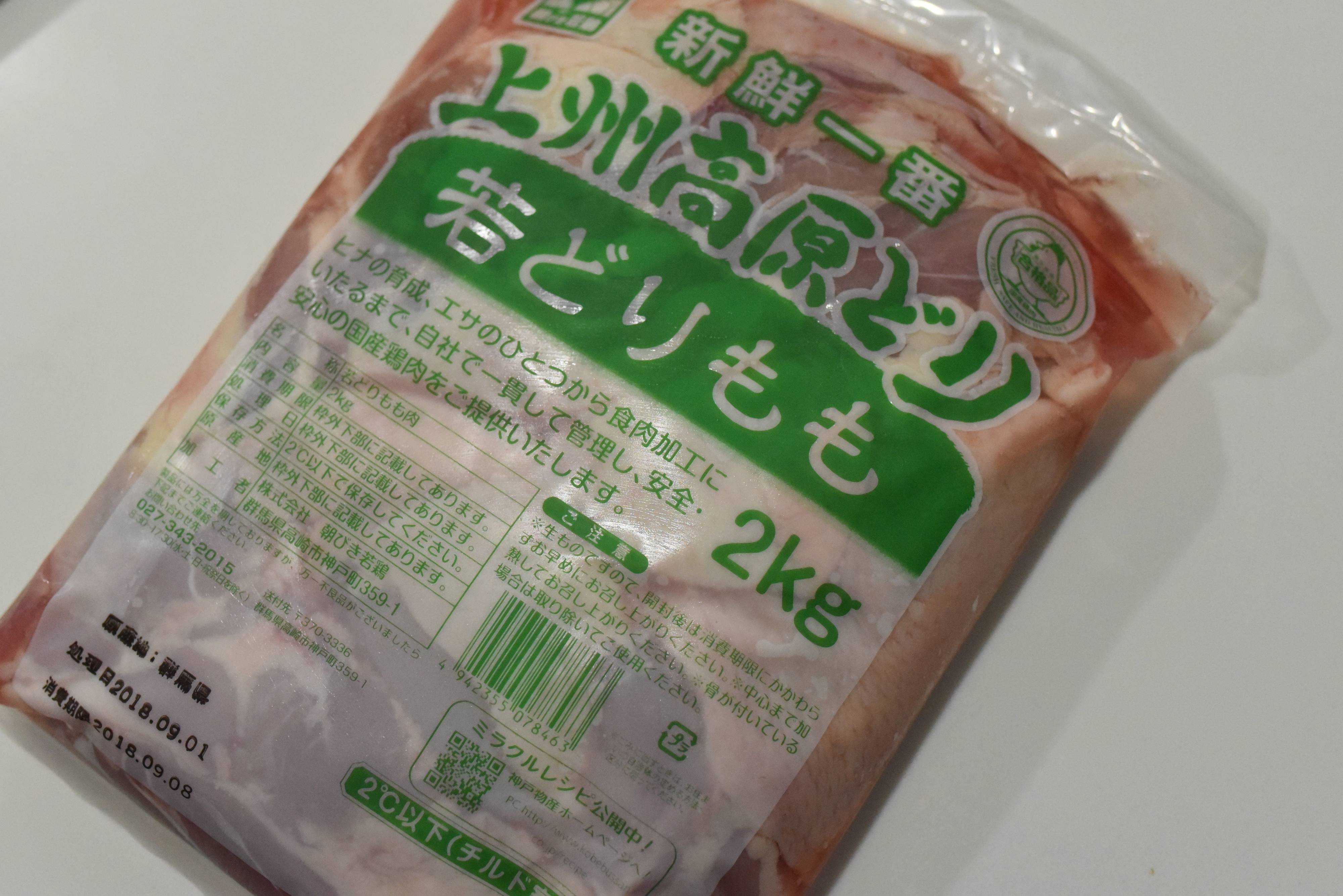 一般的なスーパーで国産鶏もも肉の価格を見たところAスーパーでは、100gあたり78円。Bスーパーでは100gあたり88円でした。業務スーパーの上州高原どり、とってもお買い得な価格です。