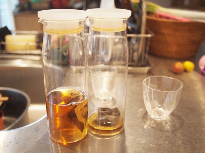 耐熱ガラスピッチャー・大は容量1Lと太っ腹なところがとても素敵なのですが、子どもも私も余裕で毎日2L分以上消費してしまいます。なので作って飲んで洗って…の繰り返しをすることを考えると、常に二本は必要です。耐熱とうたっているので、熱湯も注げます!一方を冷やしてる間に一方を飲んで…なんて使い方をしています。