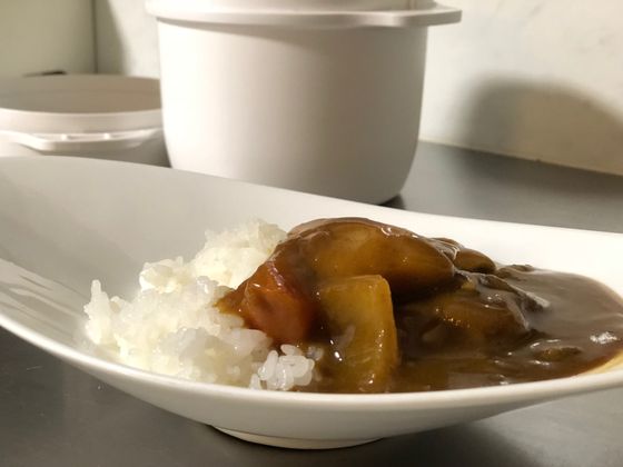 商品は4つの部品から成っていて、仕組みとしては一般的な炊飯器で言うところの内釜と炊飯器本体の間に水を入れて蒸らす感じです。色は今回紹介する白のほかに黒も用意。窯型のフォルムがかわいいですね。