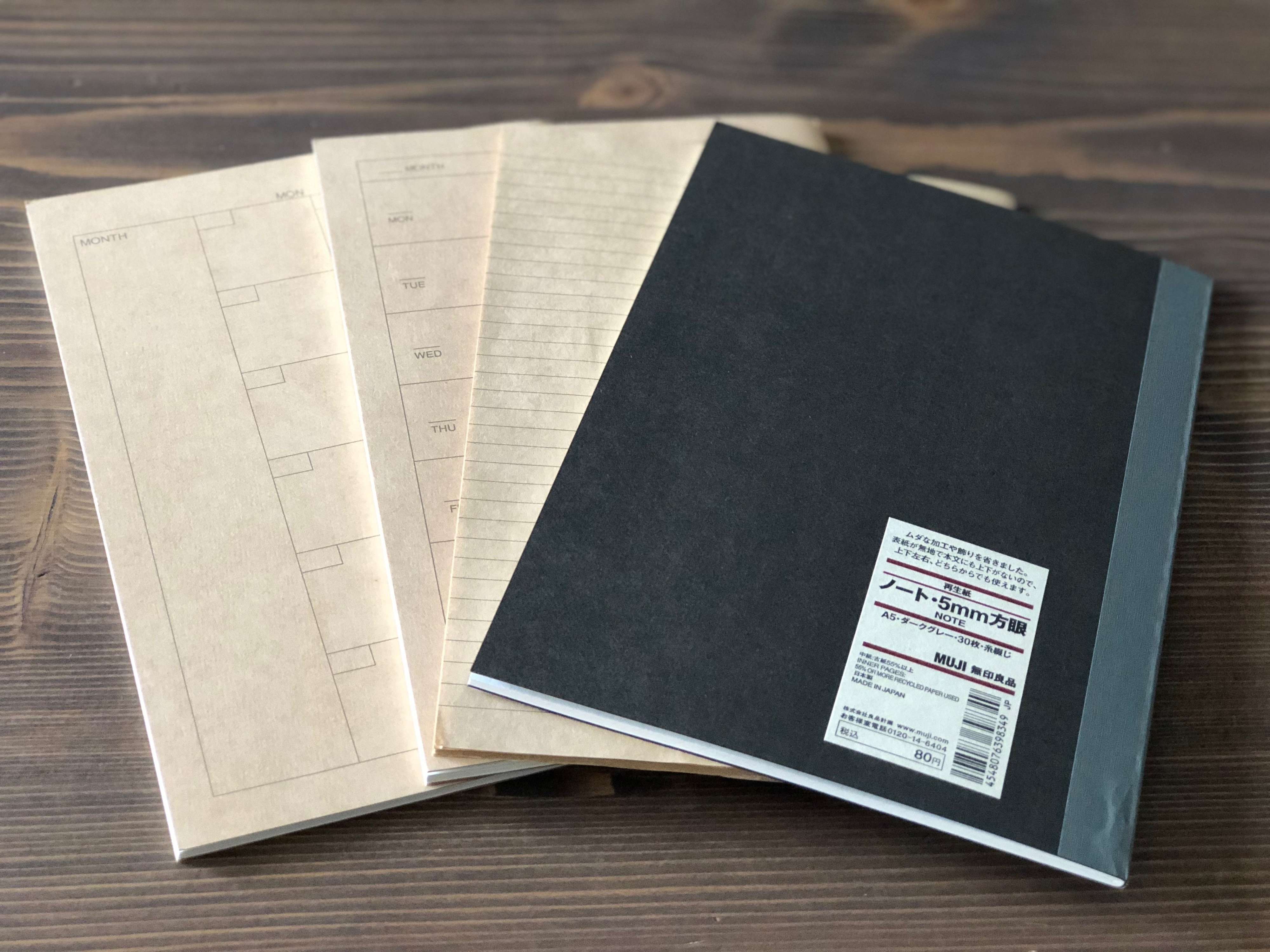 このやり方ならカスタマイズも自由自在。罫線ノートのページが足りなくなっても罫線ノートだけを交換すればOK。マンスリーやウィークリーはそのまま使えます。仕事のアイデアやこどもの成長日記などいろいろ使えて便利ですね。