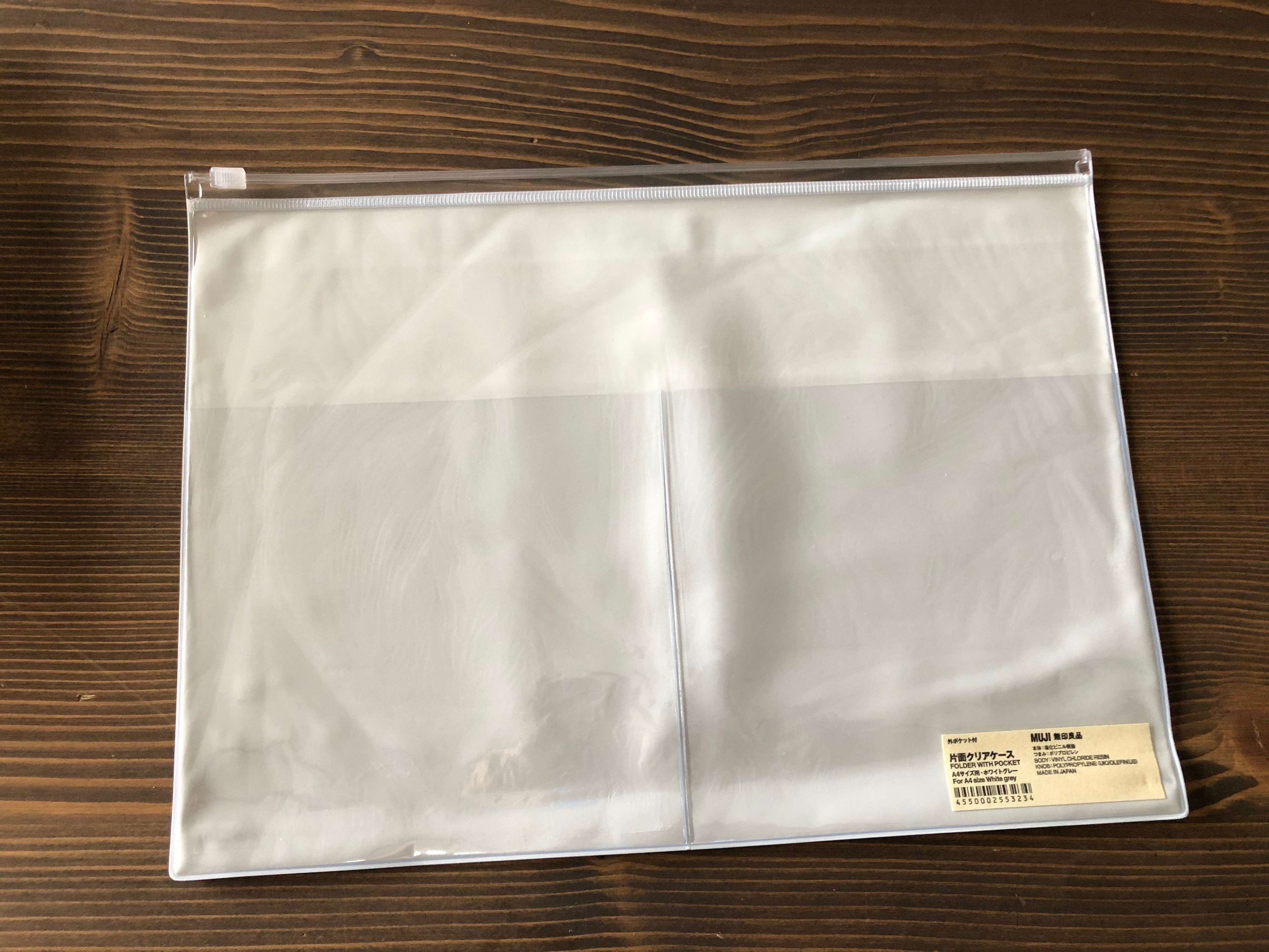 先程のスリムポケットファイルも便利ですが、付箋やカラーペンなど複数アイテムを一緒にまとめて管理したい方には「片面クリアケース」がオススメ。外側にポケットが2つあり、A5ノート類がシンデレラフィット!