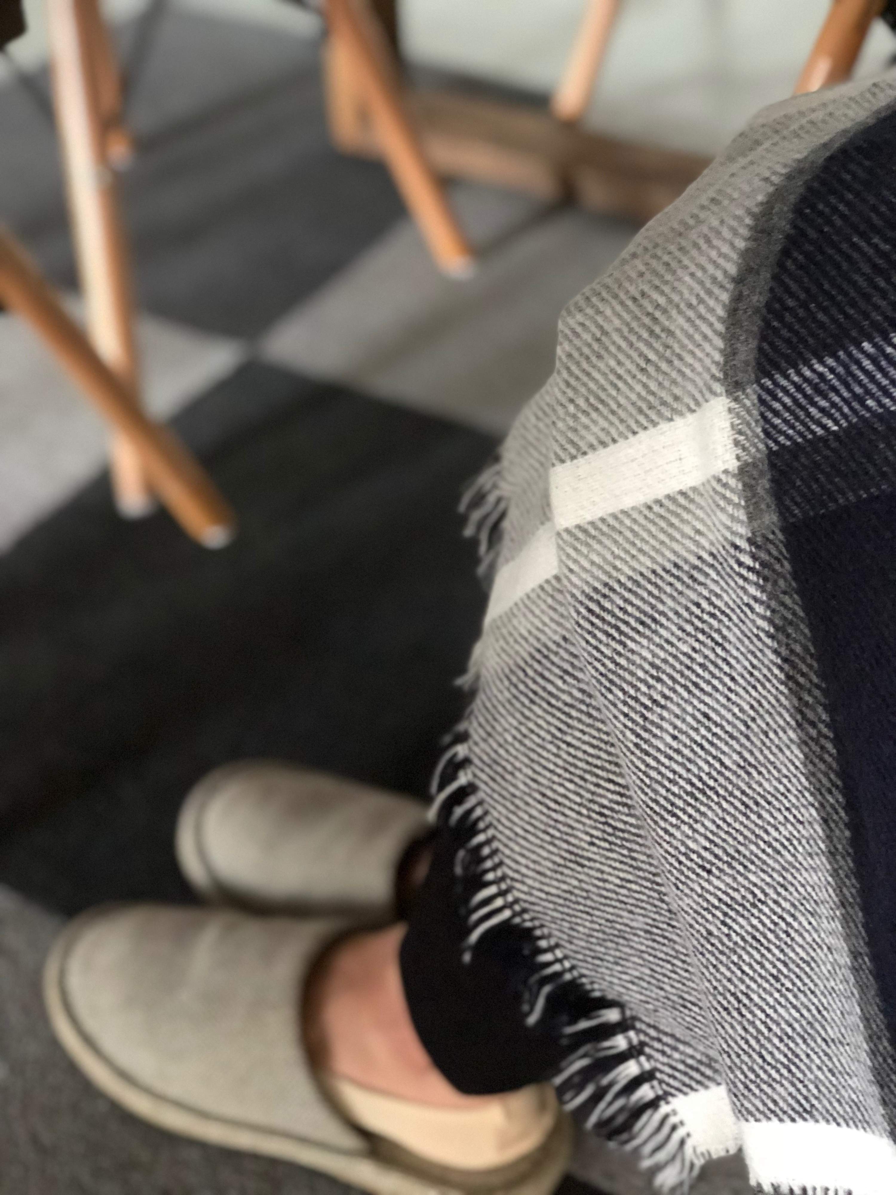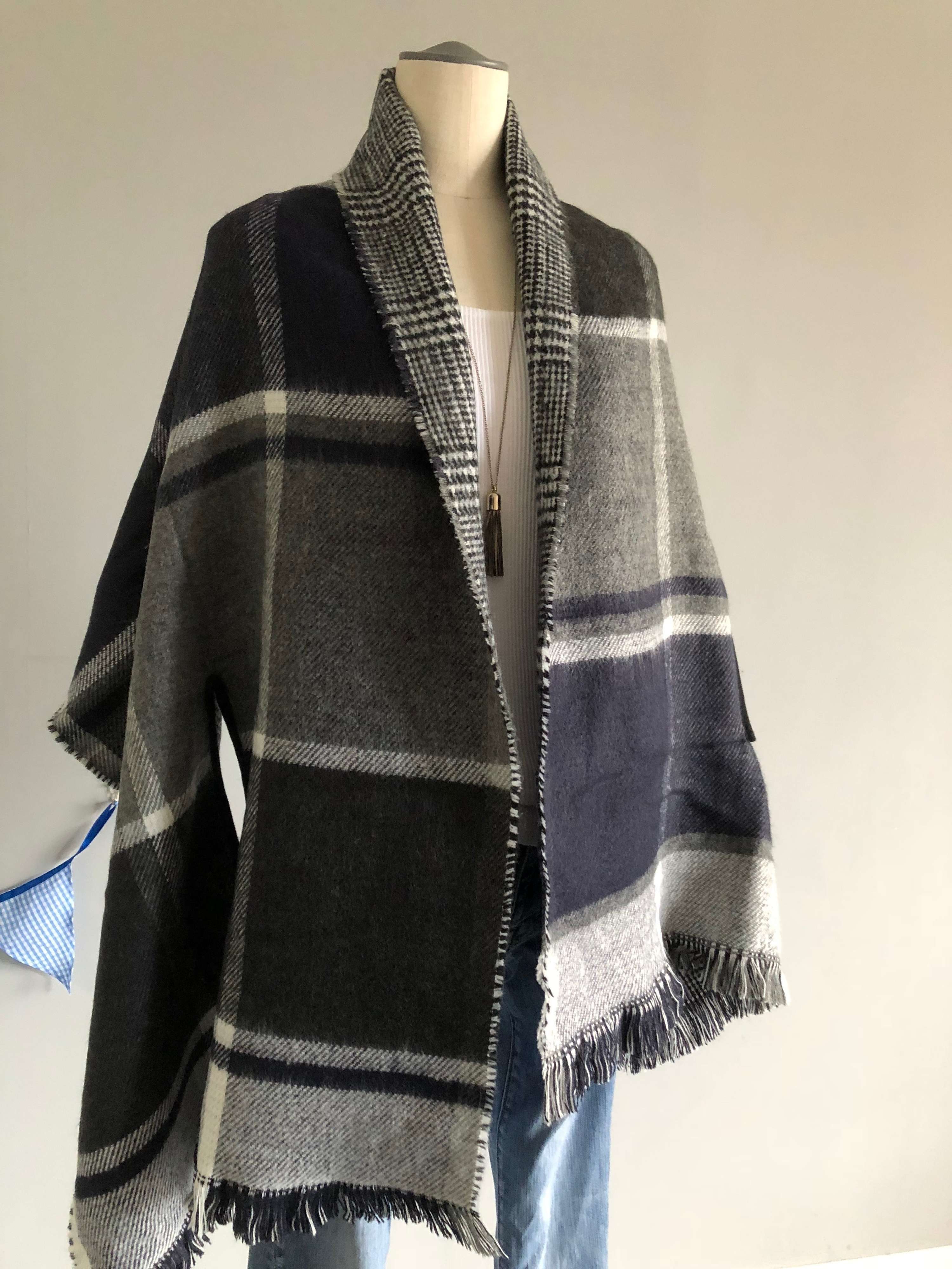 また、すでにお気づきの方もいらっしゃると思いますが、このマルチストール、実はチェック柄とグレンチェック柄のリバーシブルなんです!どちらもこの秋冬の注目柄なので、ファッションアイテムとしてもポイントは高いです。