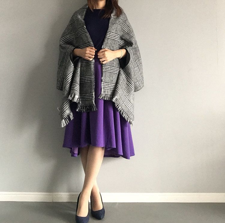まずはマルチストールをそのまま羽織って、ポンチョにしてみました。実際にやってみてわかったのですが、肩に掛けてウエストあたりの位置に20センチ程の腕を通す場所があります!腕をそのまま通した状態が上記画像。164センチの身長で腰回りまで隠れます。