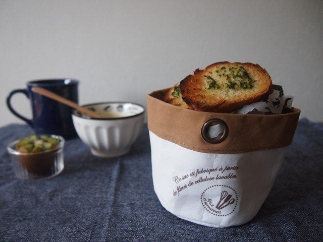 ペーパーバスケットにワックスペーパーを重ねて、パンを入れて食卓へ。
