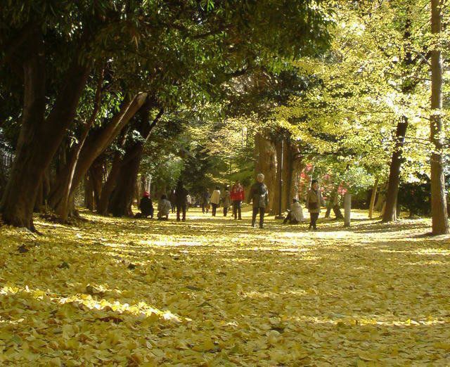 絵画館から青山通りへ続く、イチョウ並木は11月の中旬から11月の下旬まで楽しむことができます。色づき始めも素敵ですが、なんといっても圧巻は黄金の絨毯が敷き詰められる時期でしょう。上も下もゴールドという幻想的な世界を体験できます。また、紅葉の時期は神宮外苑いちょう祭りが催され、露店などが出て賑わいます。