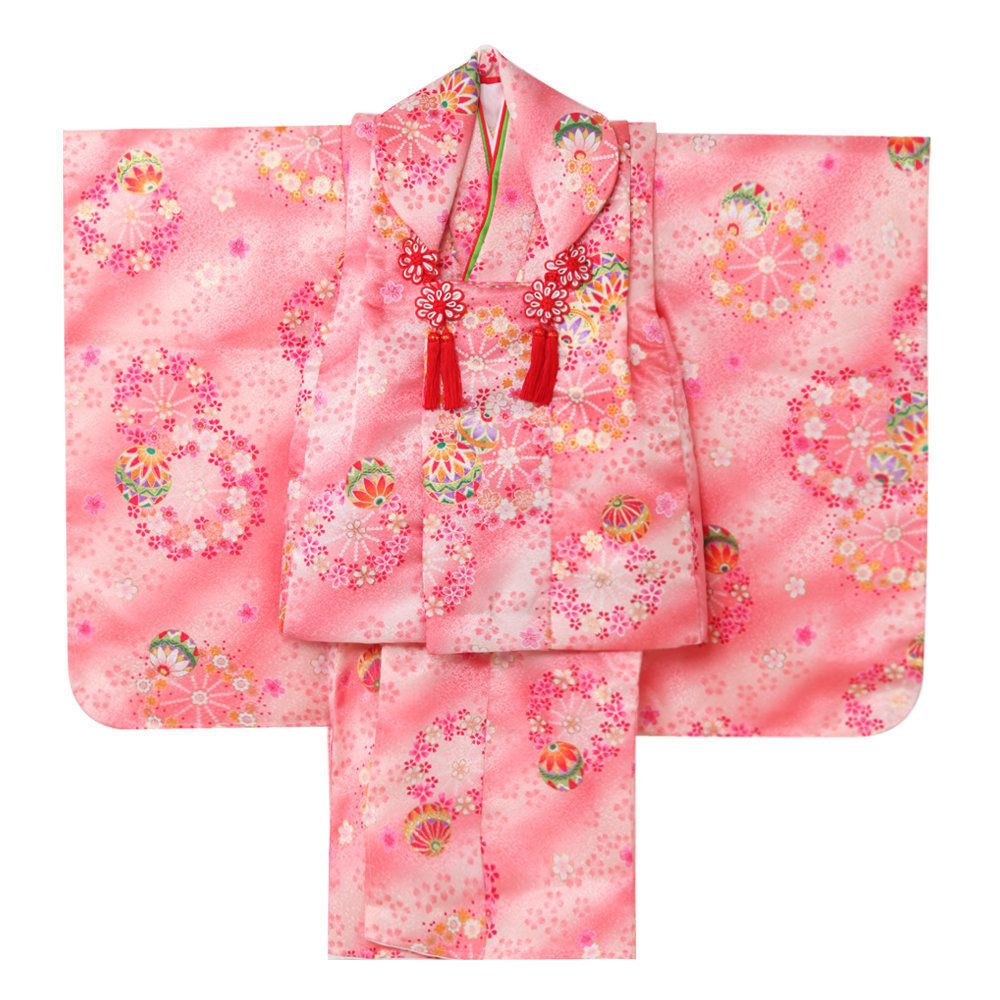 3歳の場合、着物の上に「被布(ひふ)」と呼ばれるベストのようなものを着るのが一般的。人によっては着物に「作り帯」を締めるケースもありますが、3歳だと慣れない帯に本人が疲れてしまいます。そのため、着物をつけひもで簡単に結び、上から被布を着ることでその部分を隠しているのです。