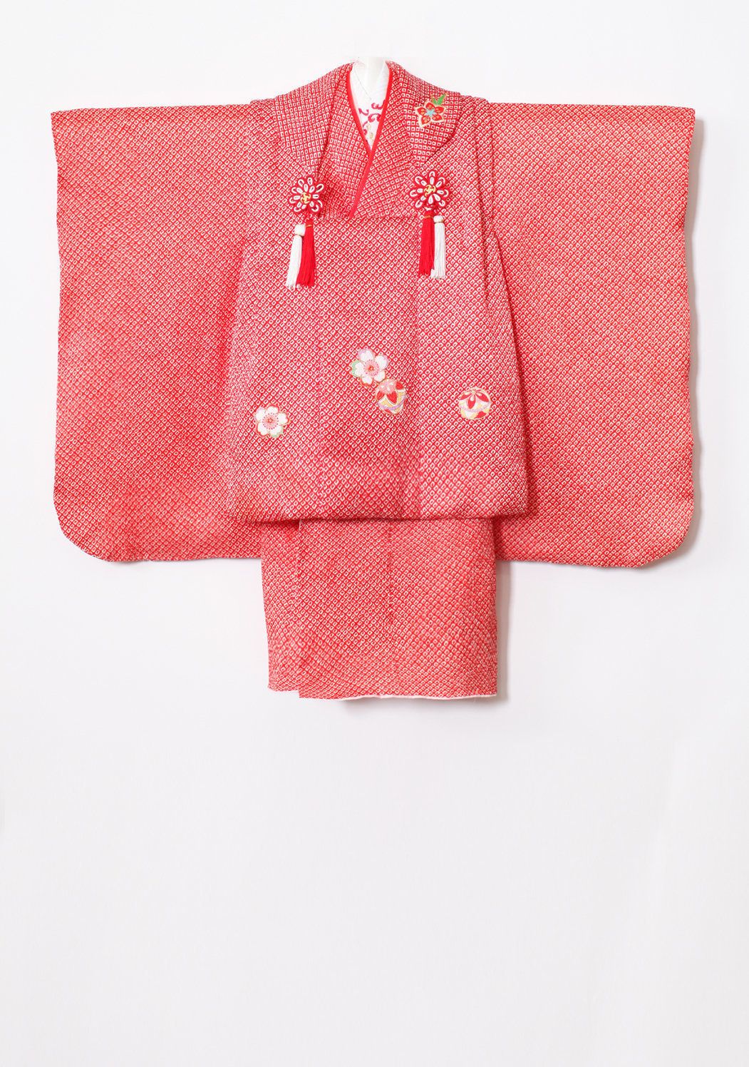 伝統の絞り染めである「鹿の子(かのこ)絞り」が施された着物は、昔からの定番。特に赤い色の総絞りは華やかで、七五三のお祝いにぴったりです。正統派を好むならこれで決まり!