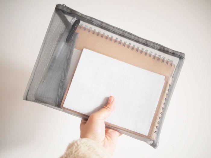 店頭に赴くといくつかのサイズと色のバリエーションがあるのがわかるのですが、いずれの商品もメッシュ加工がされています。中身が見やすいというのは整理がしやすいということでもあります。余計なものでカバンをごちゃごちゃにしたくない方には特におすすめです。