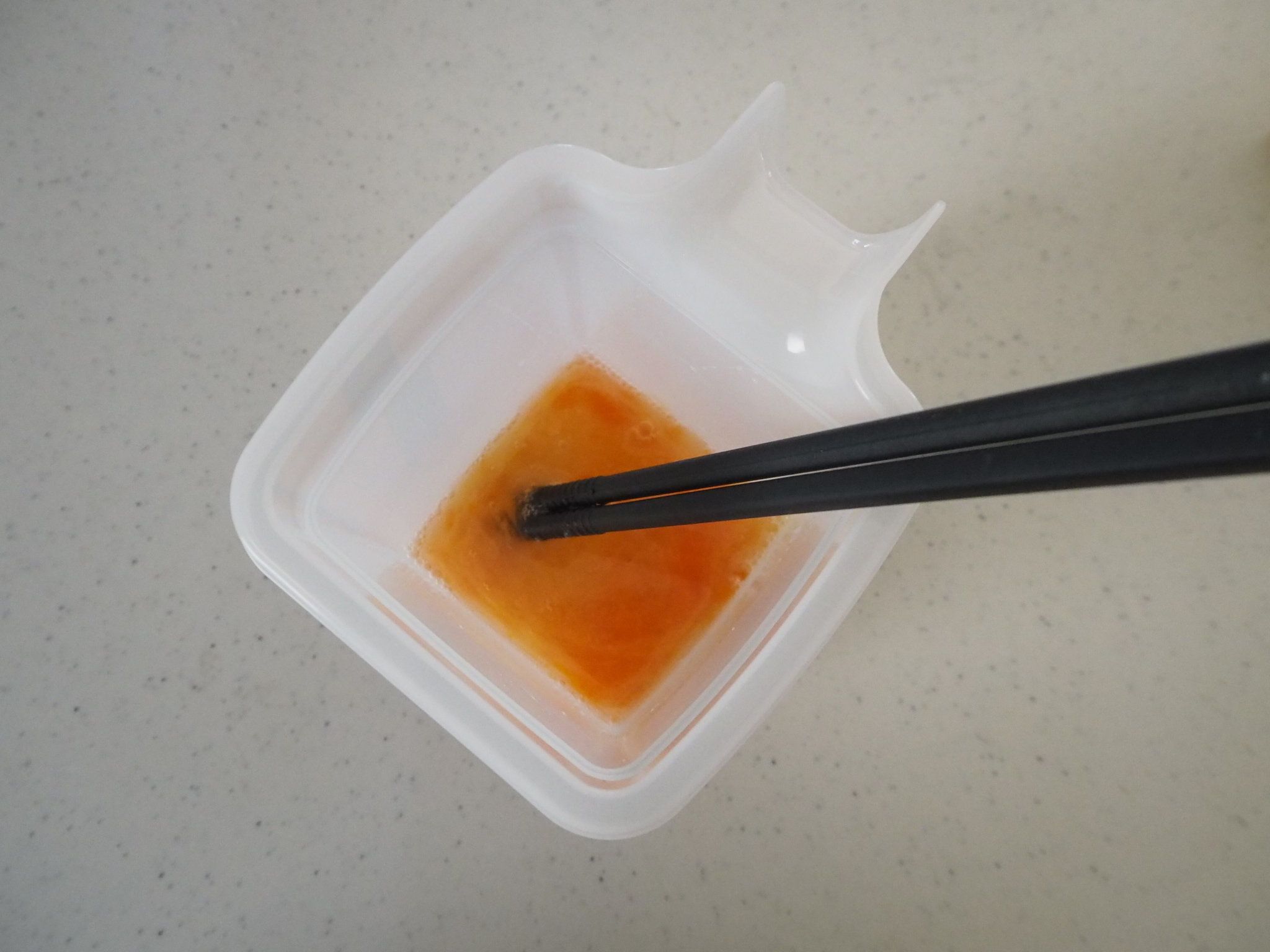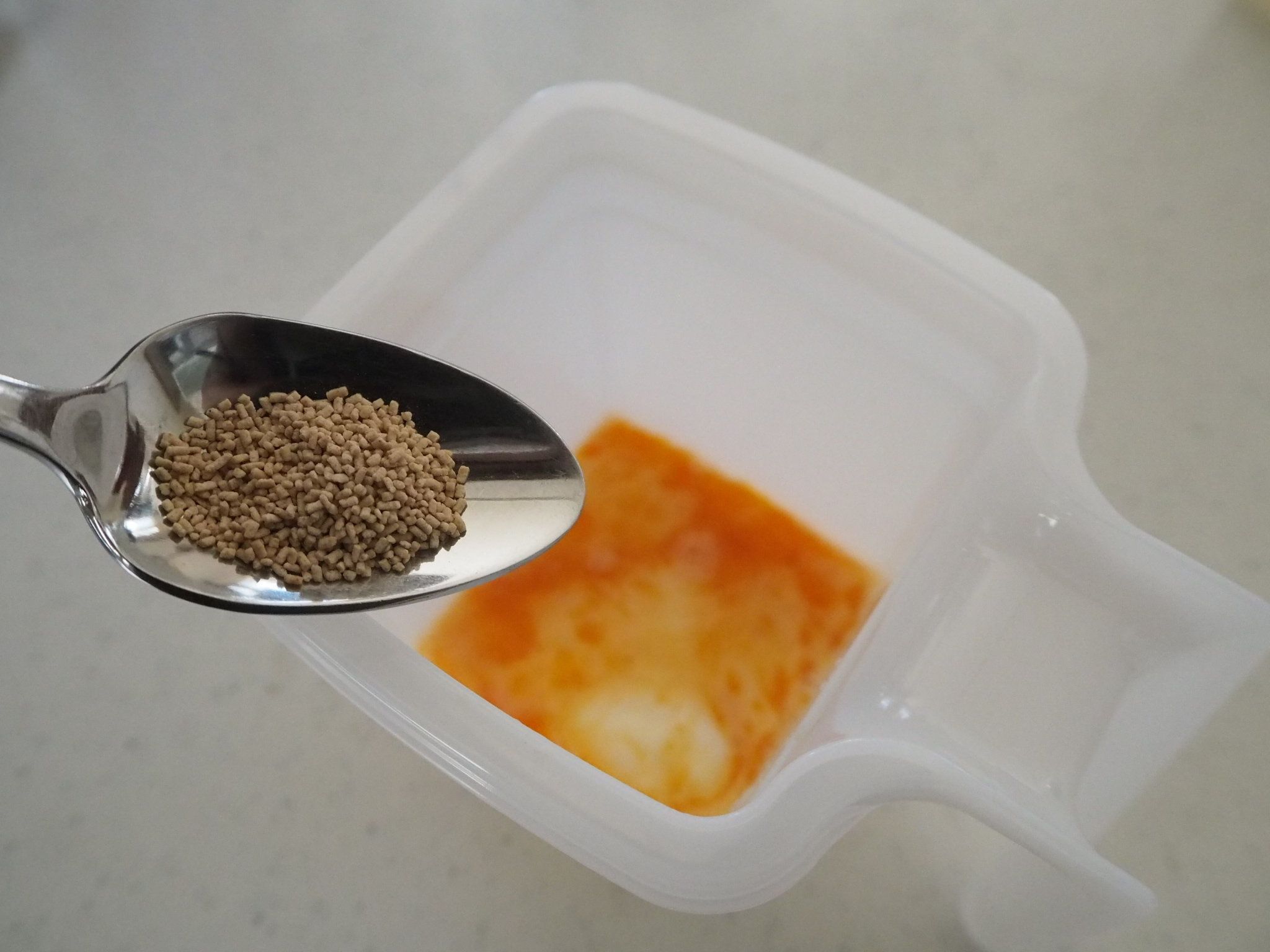 電子レンジから取り出し顆粒だしを1g入れて混ぜたら再度500Wで40秒加熱します。