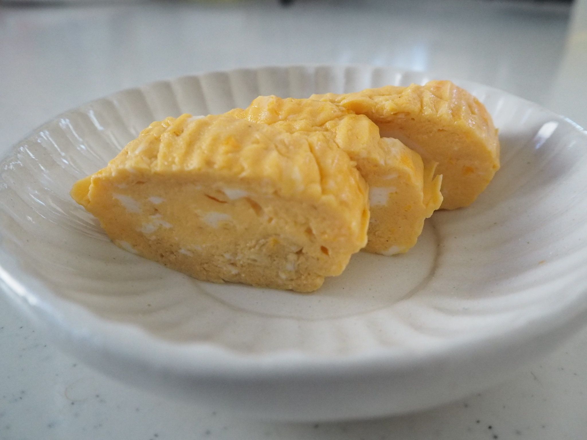 上から押すことによって中身のぎゅっとつまった出だし巻きたまごが。3切れ程度の大きさのものができるので朝のお弁当作りには本当に便利!!