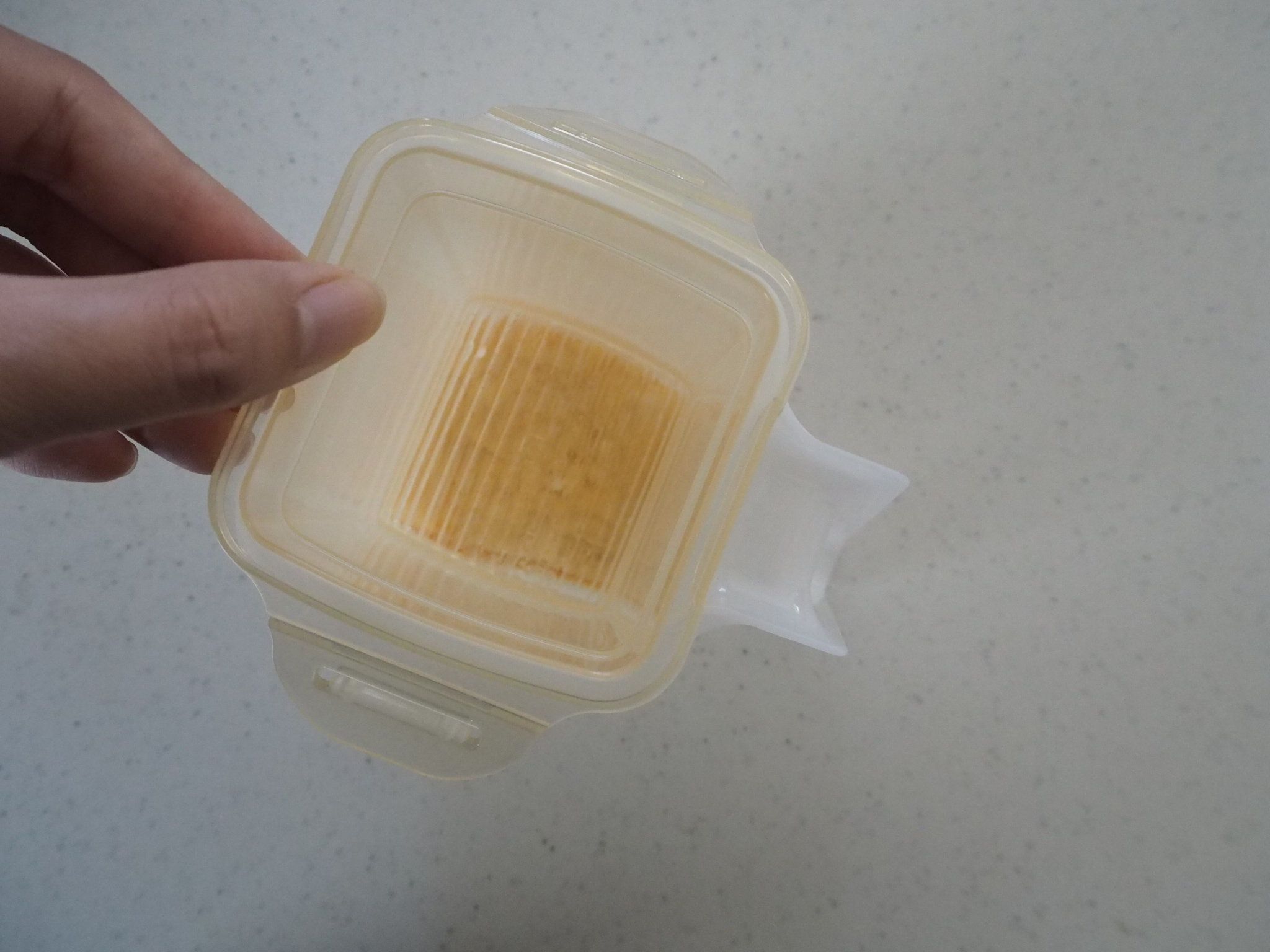 付属の押し型フタでゆっくりと押して両端をぱちっと止めたら1分後にはだし巻きたまごの完成!